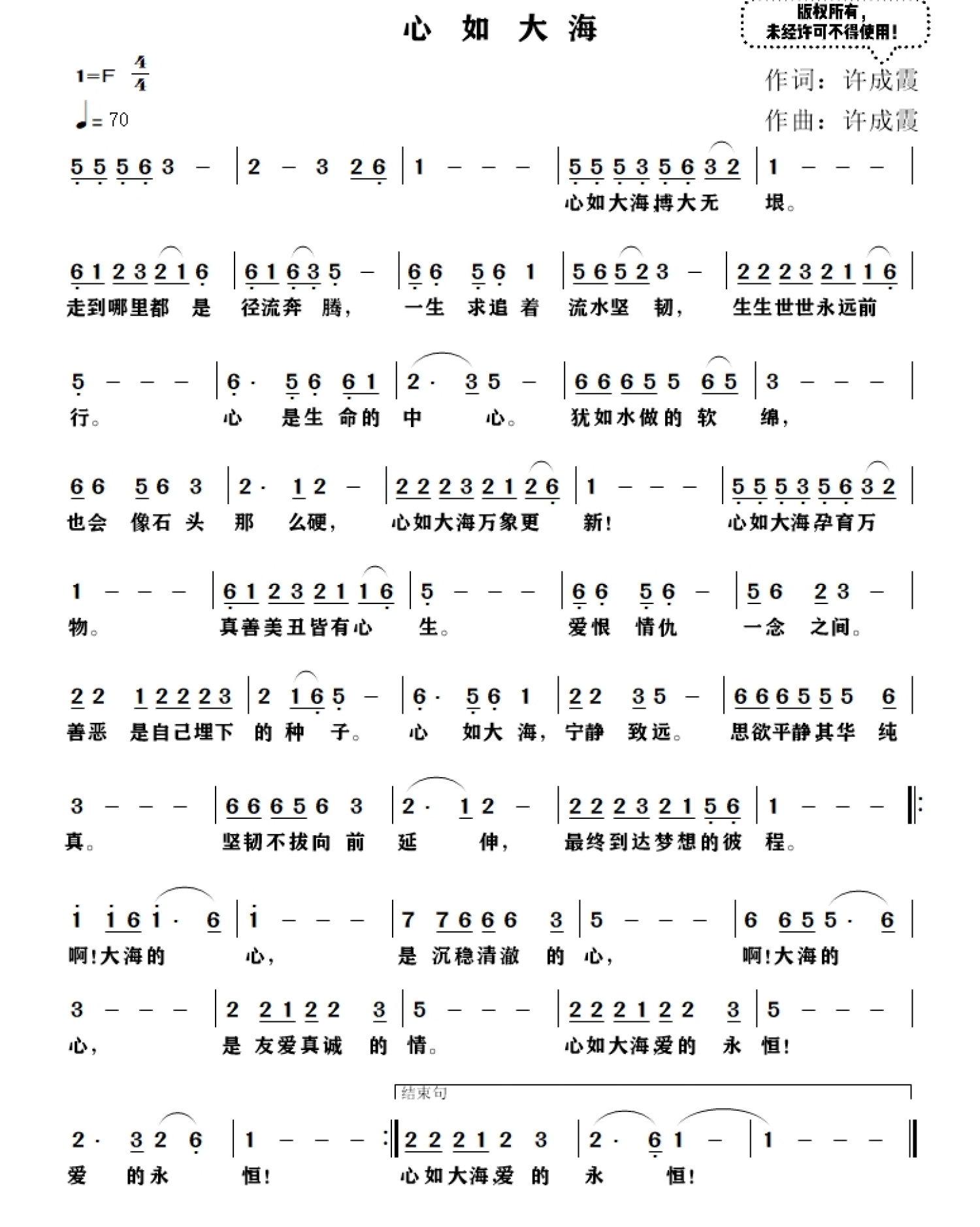 简谱F调来源:许成霞608 浏览2021-08-25 11:10发布图谱共1页