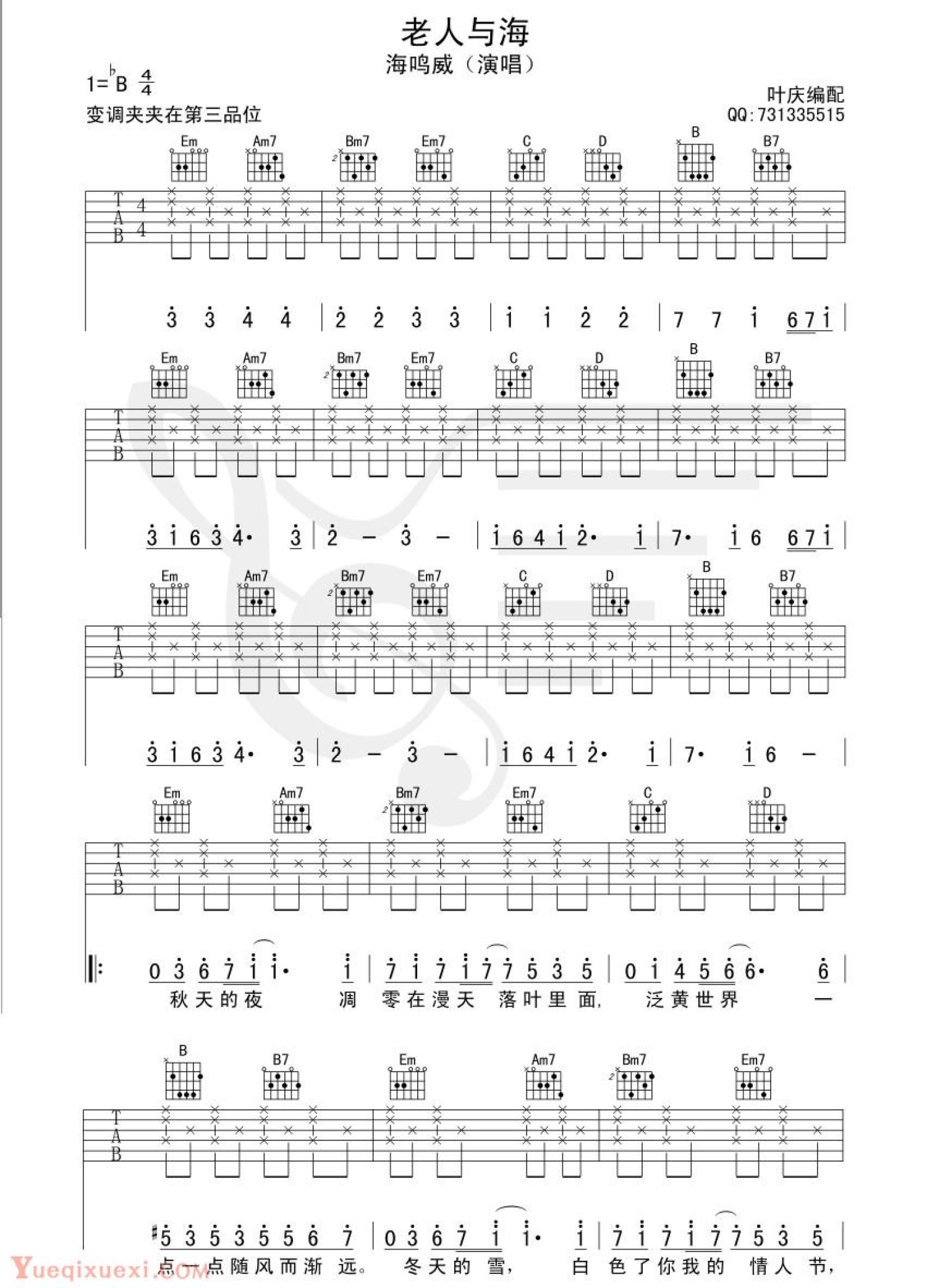 曲谱介绍: 老人与海吉他谱海明威六线谱_非常清晰的版本老人与海