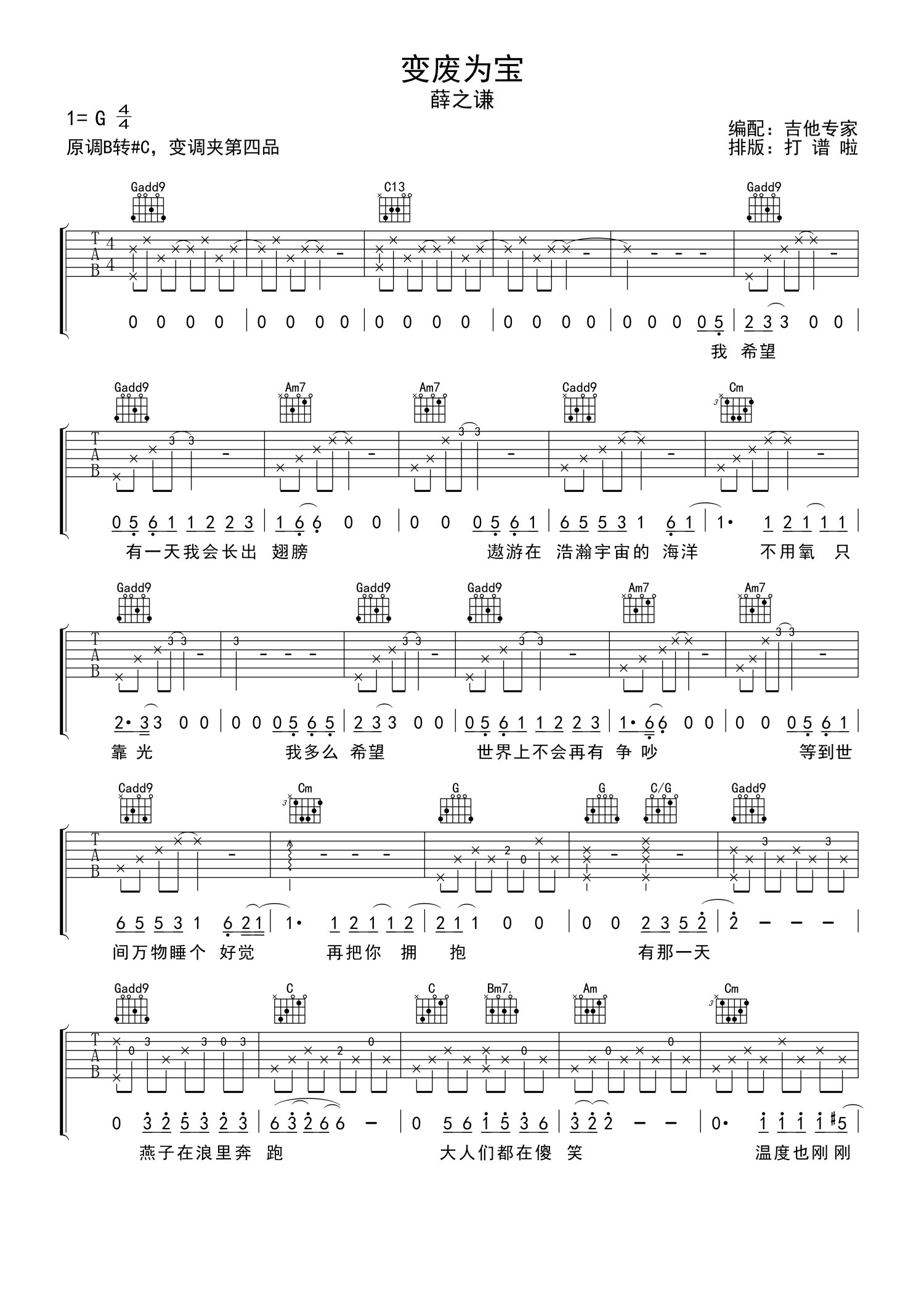 • 变废为宝吉他谱 - 薛之谦 - G调吉他弹唱谱第1张