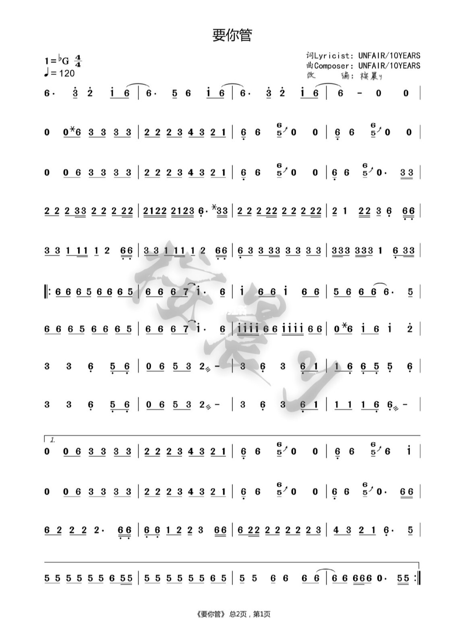 当前位置:琴谱网>简谱>要你管