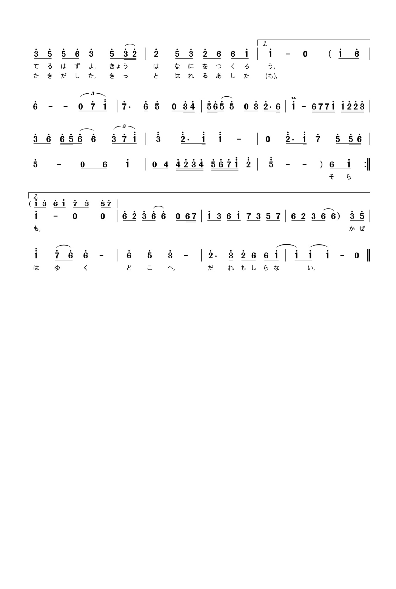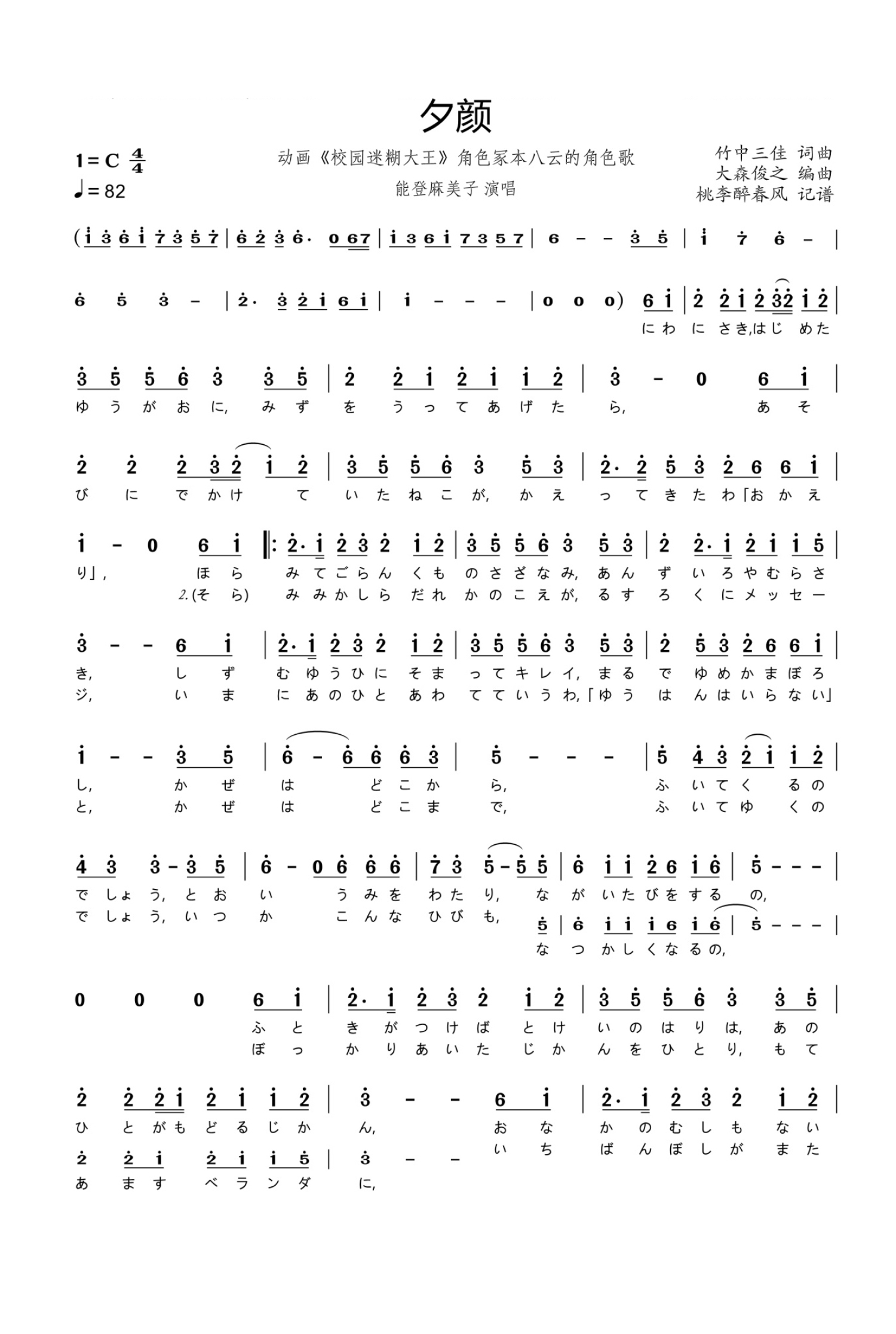 夕颜简谱 - 能登麻美子