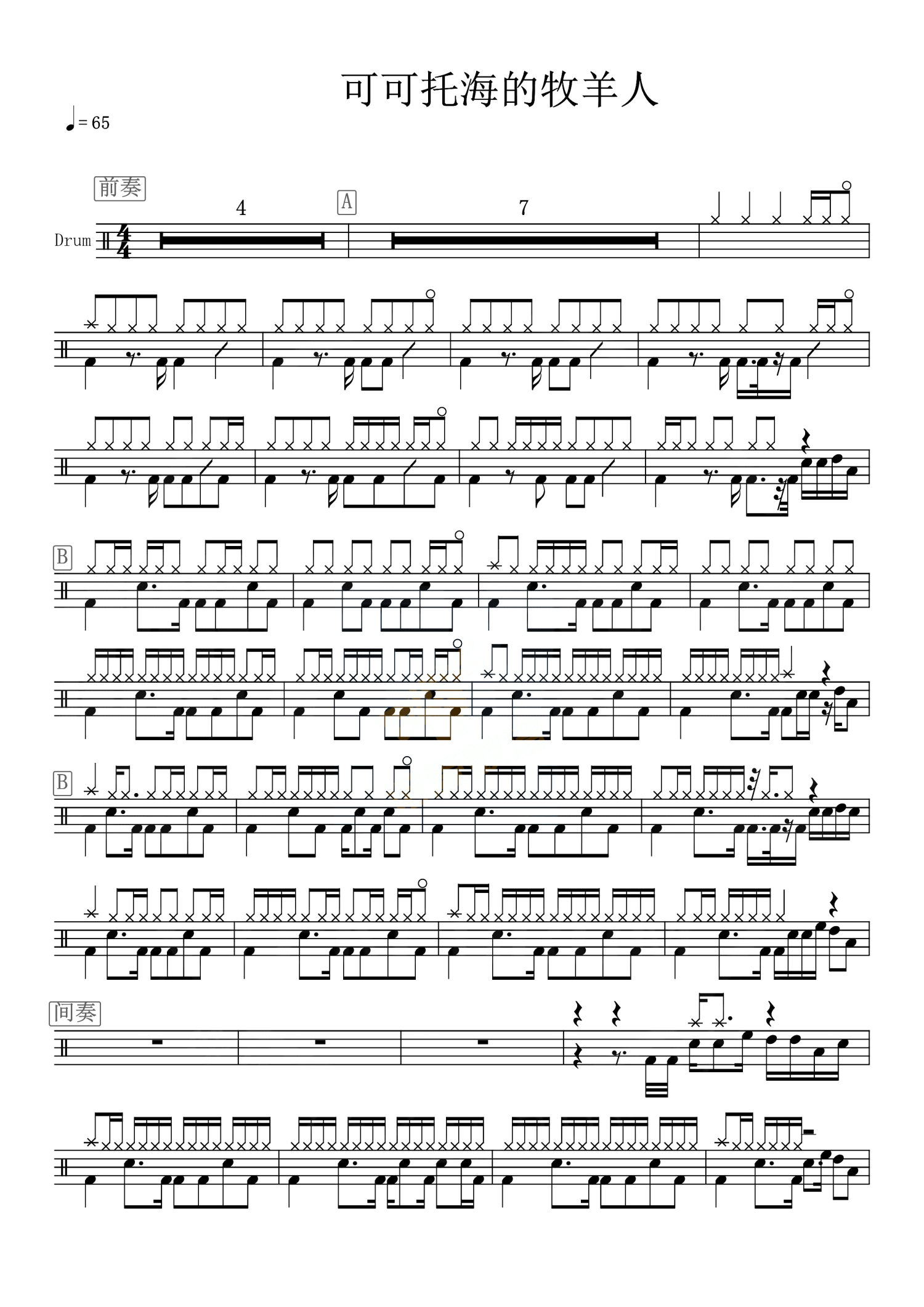 • 可可托海的牧羊人鼓谱 - 王琪 - 架子鼓谱第1张
