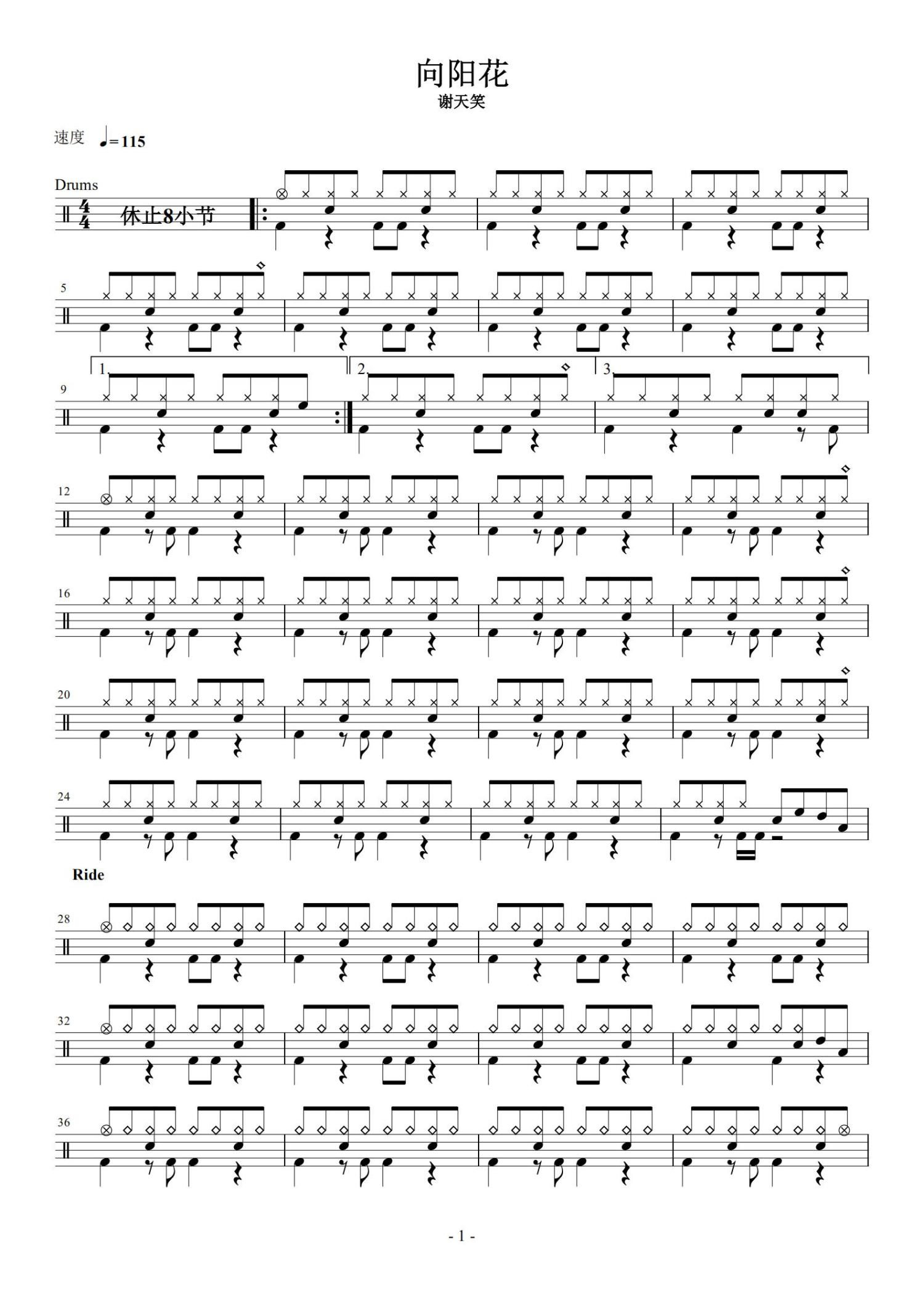 • 向阳花鼓谱 - 谢天笑 - 架子鼓谱第1张