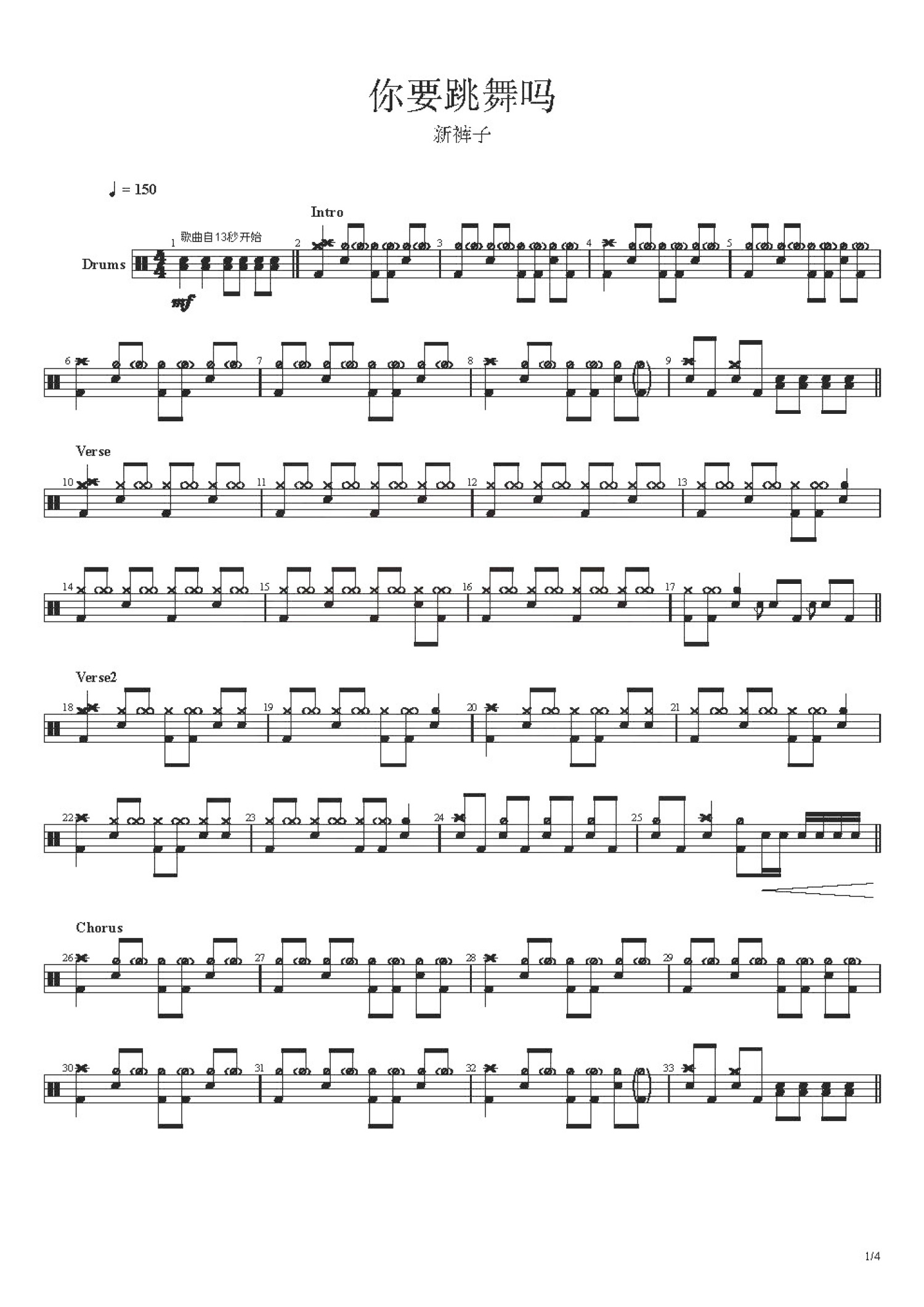 • 你要跳舞吗鼓谱 - 新裤子乐队 - 架子鼓谱第1张