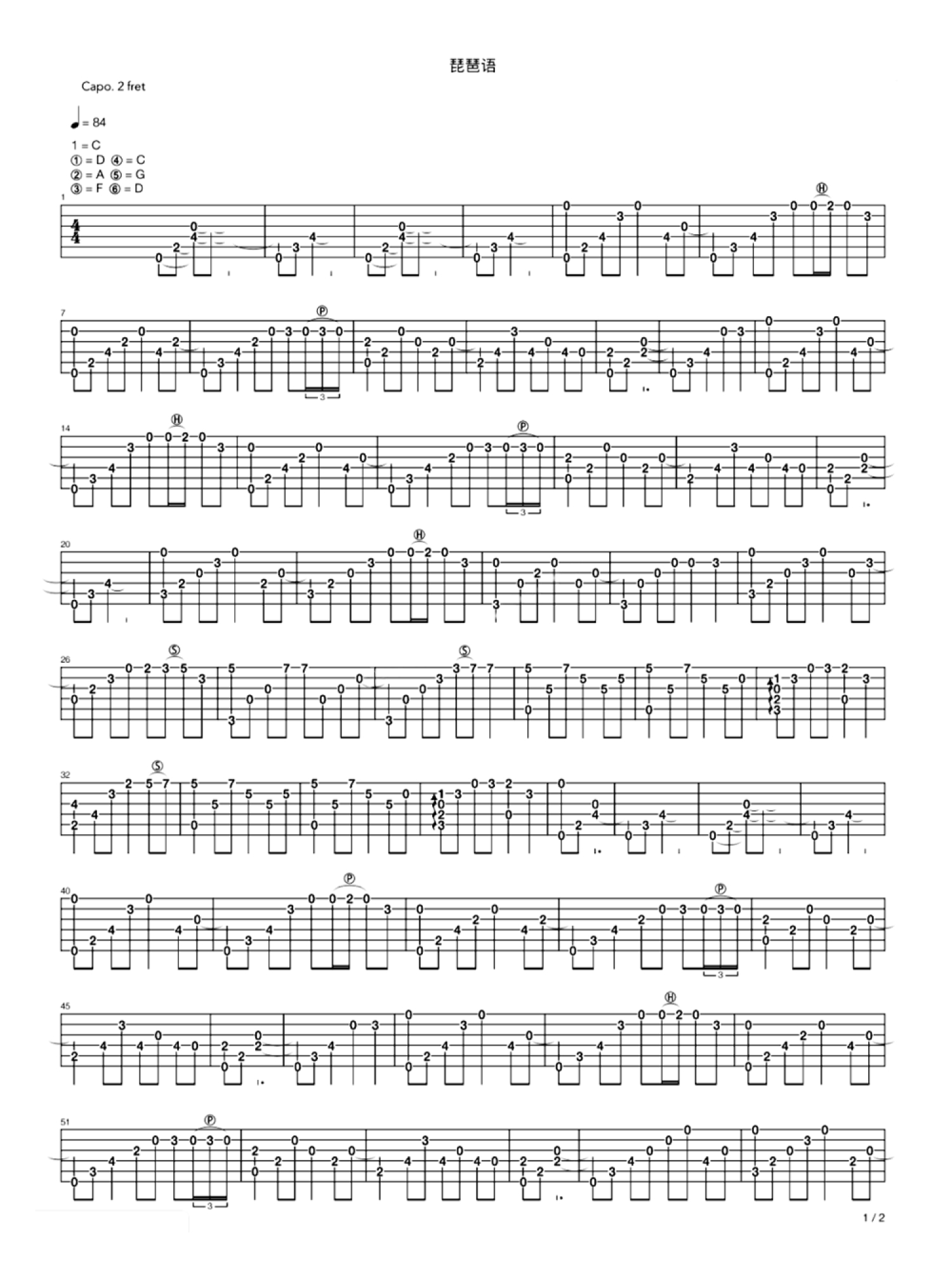 曲谱介绍: 琵琶语吉他指弹独奏谱弹琴吧版本