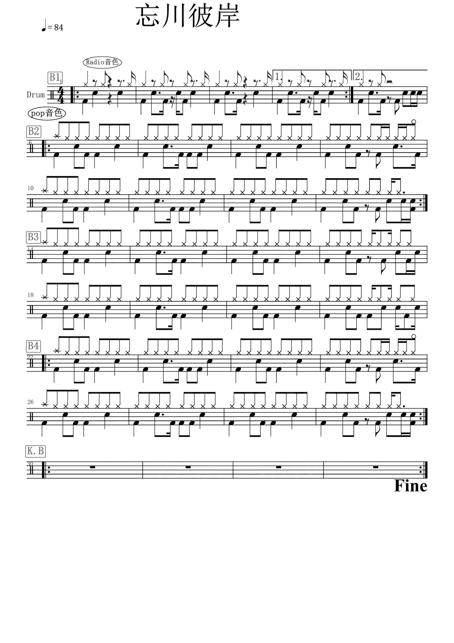 当前位置:琴谱网>架子鼓谱>忘川彼岸