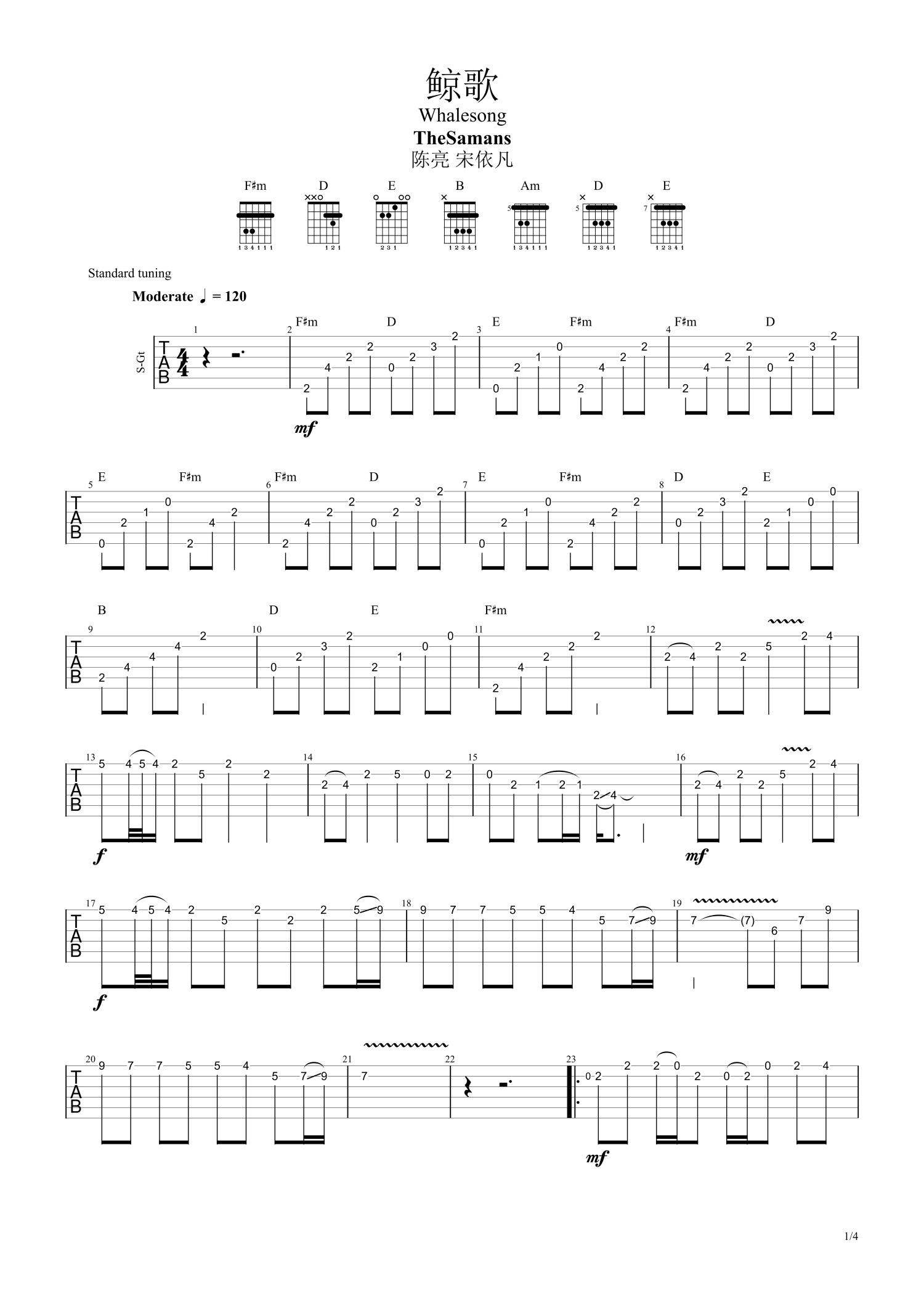 • 鲸歌吉他谱 - 陈亮/宋依凡 - 吉他独奏谱第1张