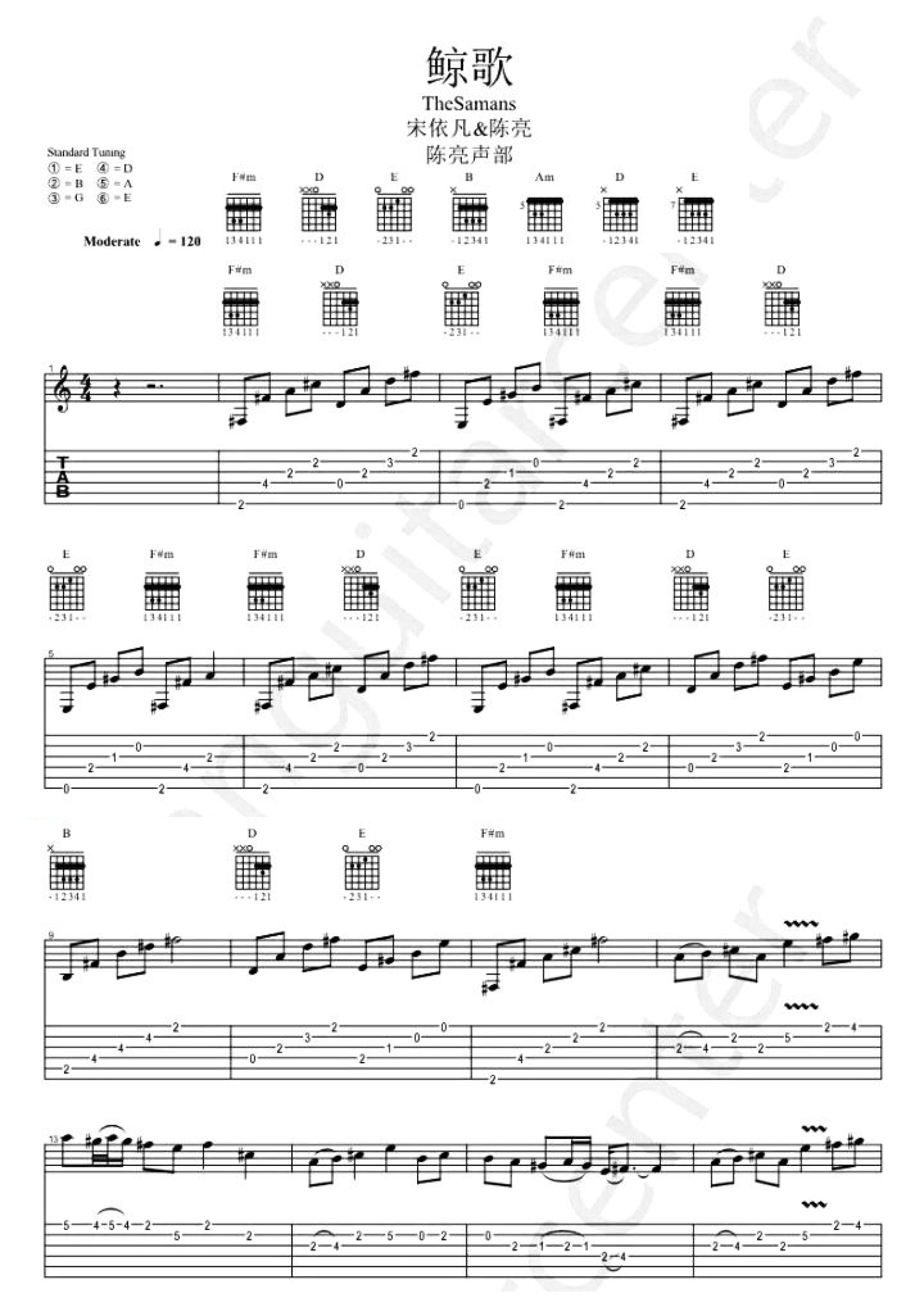 曲谱介绍: 宋依凡/陈亮《鲸歌》吉他谱_吉他独奏谱