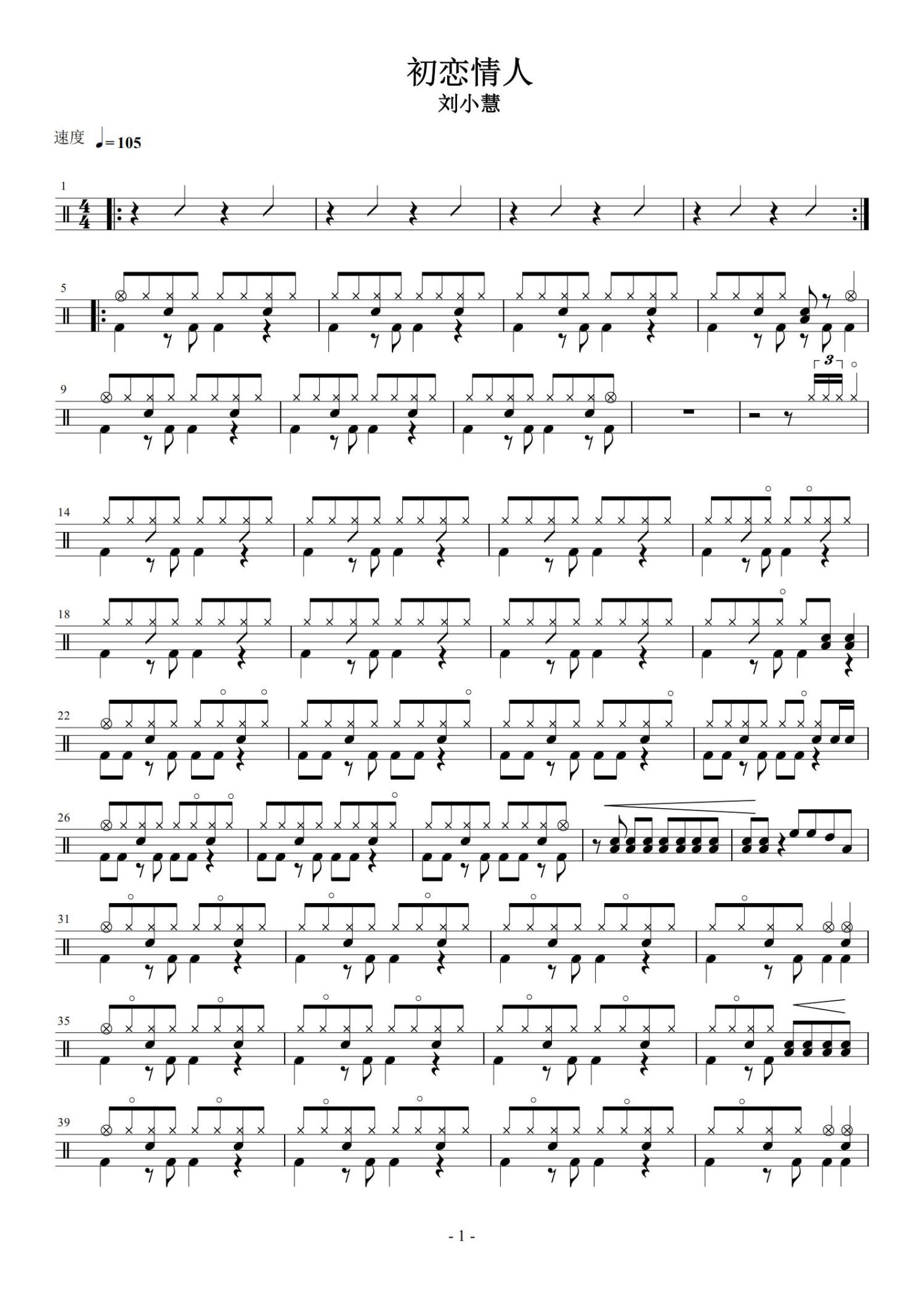 • 初恋情人鼓谱 - 刘小慧 - 架子鼓谱第1张