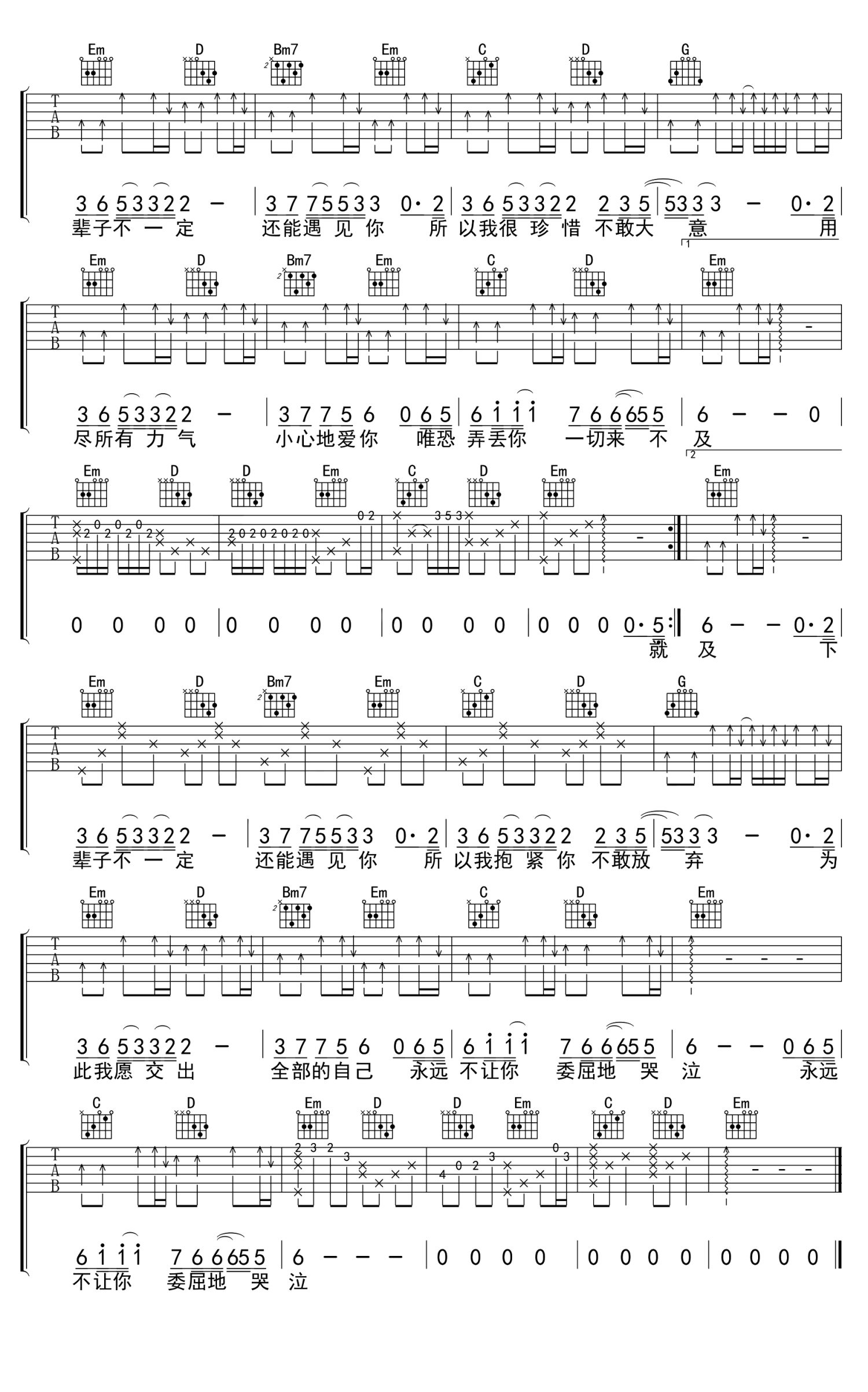 当前位置:琴谱网>吉他弹唱>下辈子不一定还能遇见你