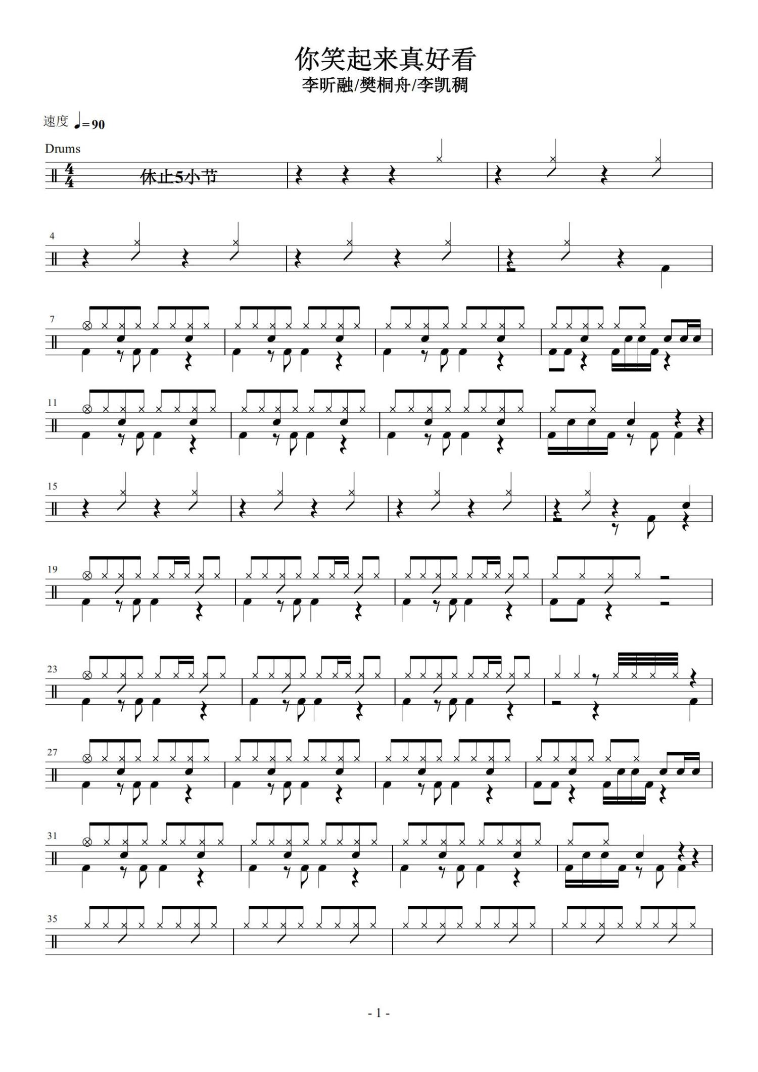 • 你笑起来真好看鼓谱 - 李昕融、樊桐舟、李凯稠 - 架子鼓谱第1张