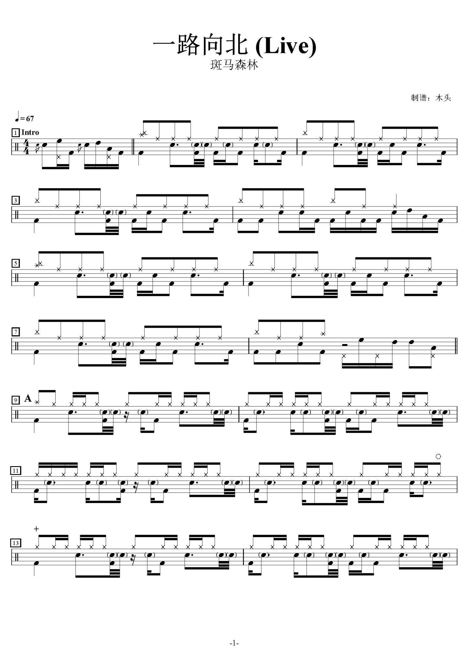 一路向北鼓谱 - 斑马森林 - 架子鼓谱 - LIVE版