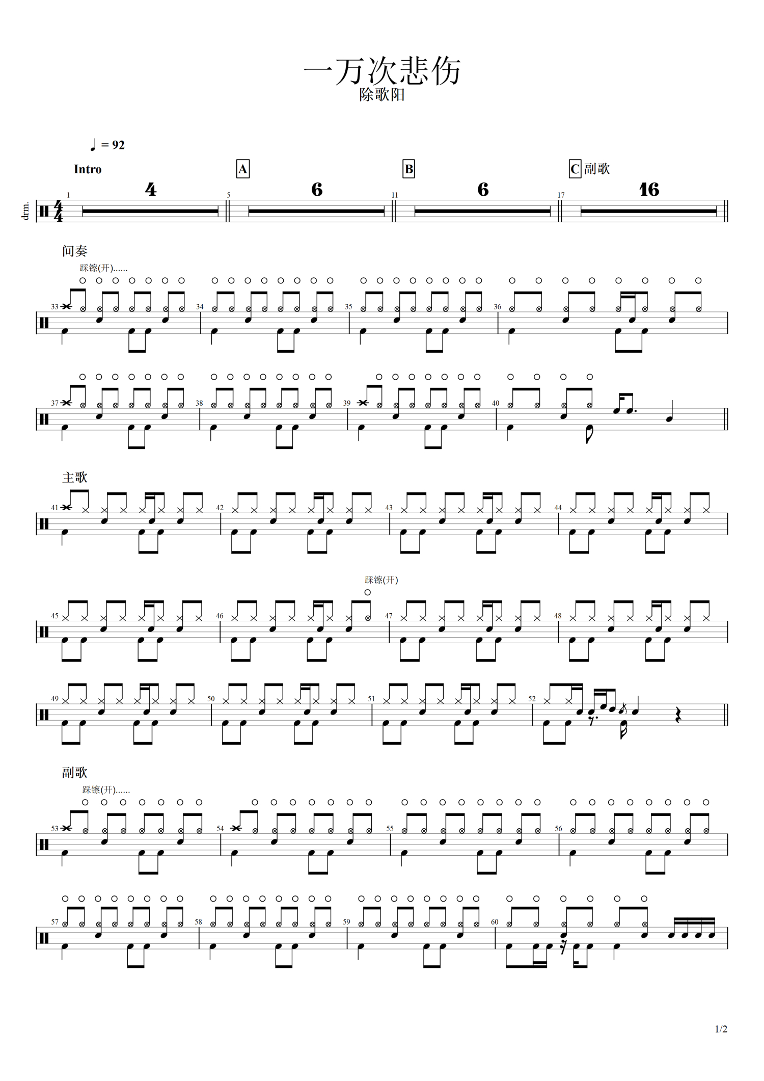 • 一万次悲伤鼓谱 - 徐歌阳 - 架子鼓谱第1张