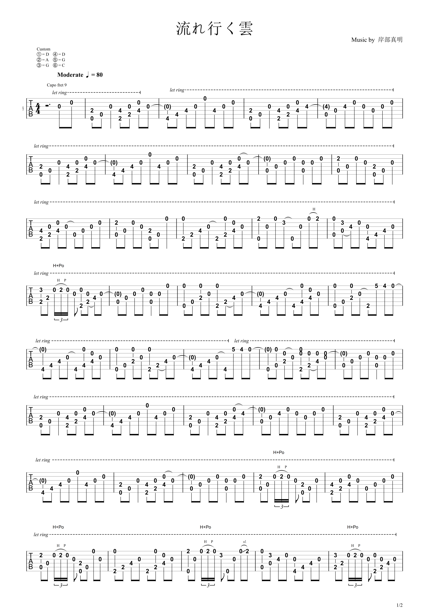 流行的云吉他谱 - 吉他独奏谱