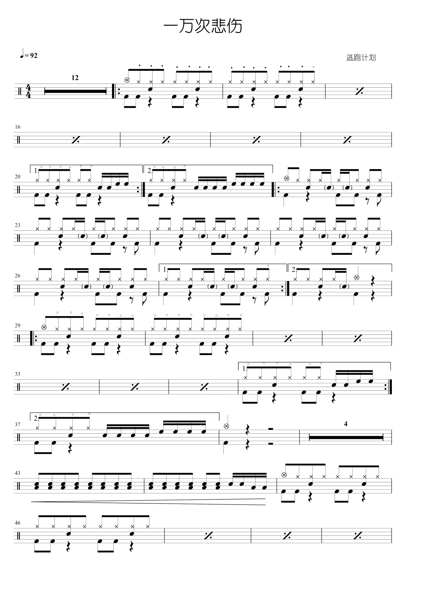 • 一万次悲伤鼓谱 - 逃跑计划 - 架子鼓谱第1张