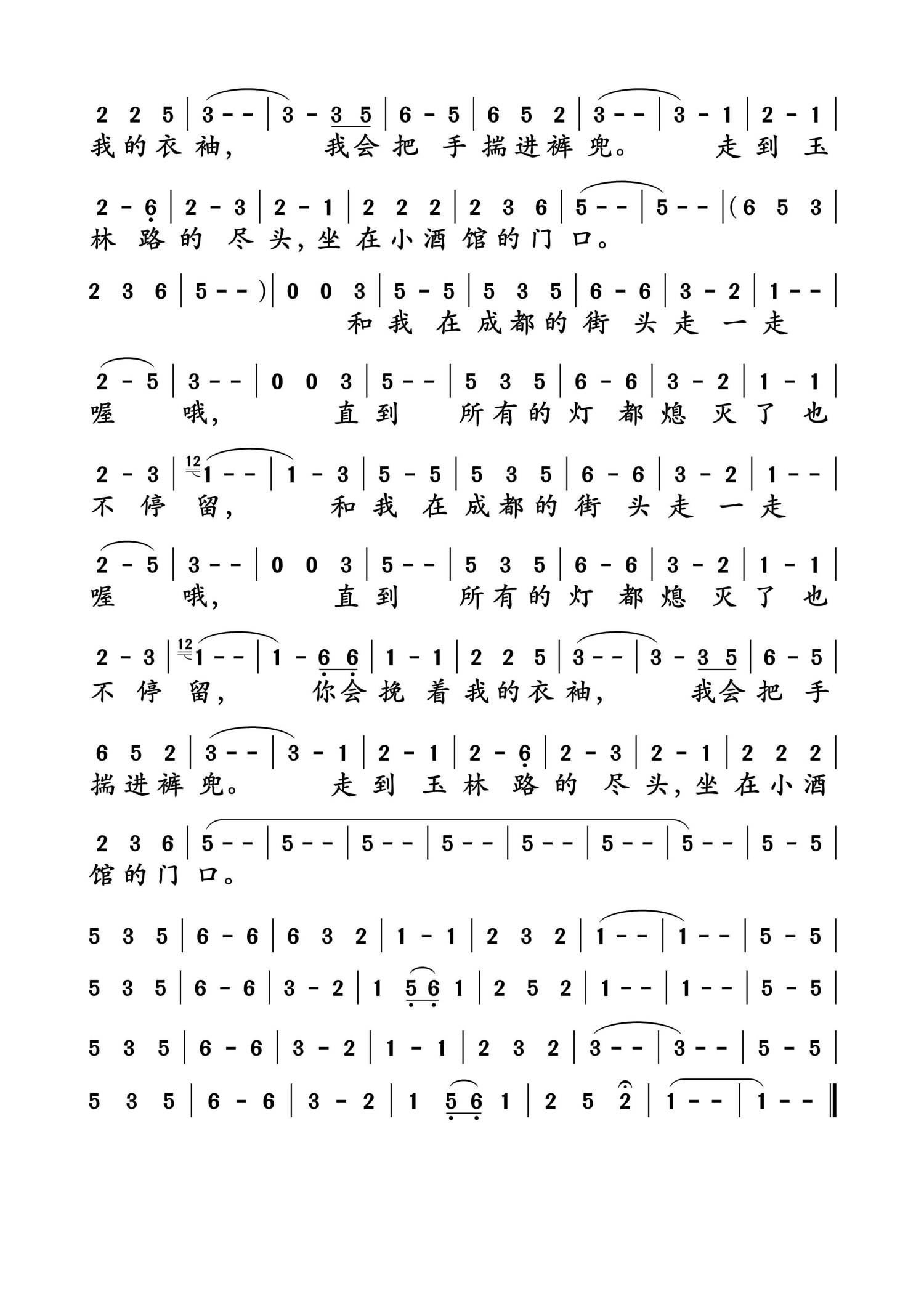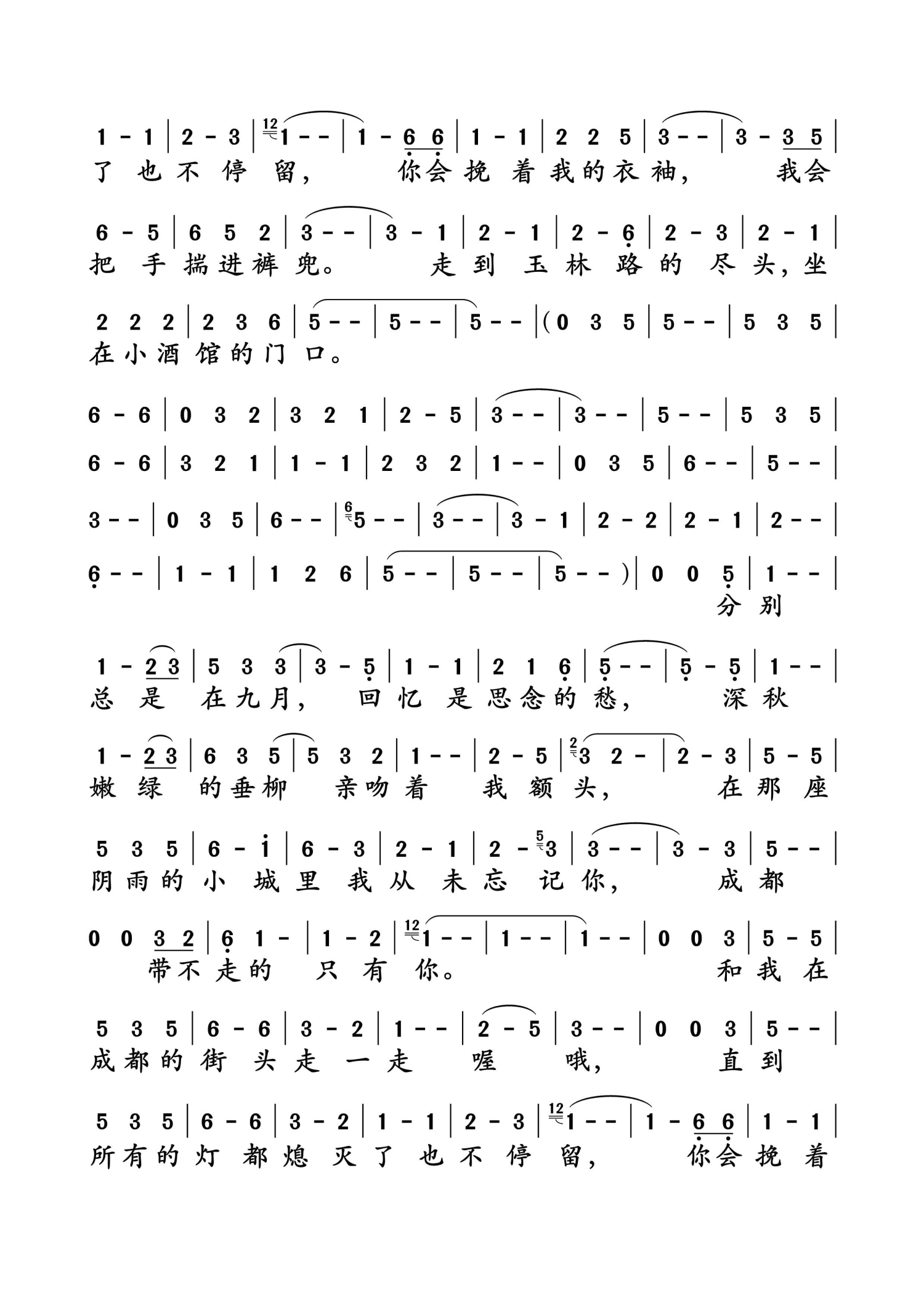 曲谱介绍: 赵雷《成都》歌词_简谱