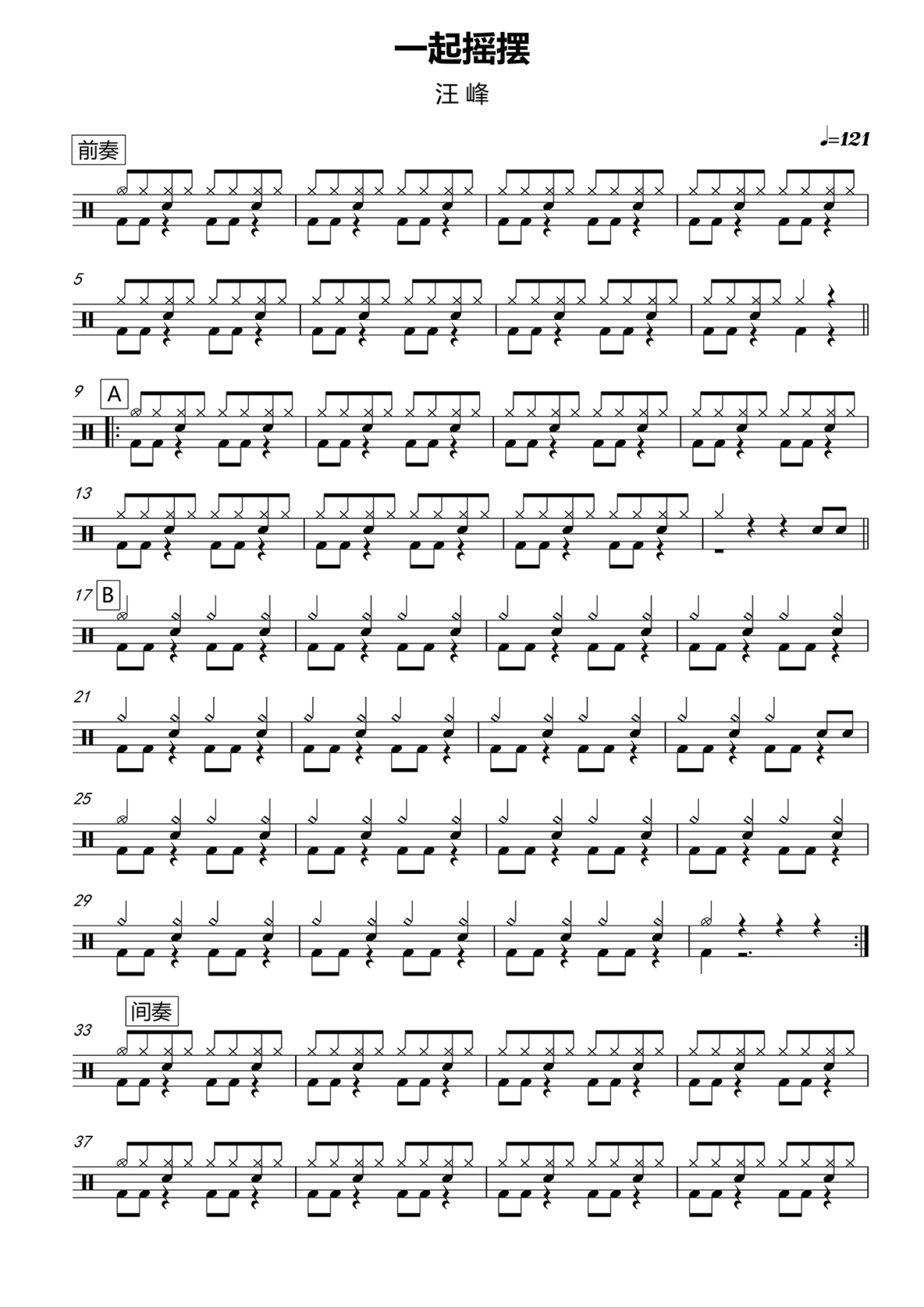 • 一起摇摆鼓谱 - 汪峰 - 架子鼓谱第1张