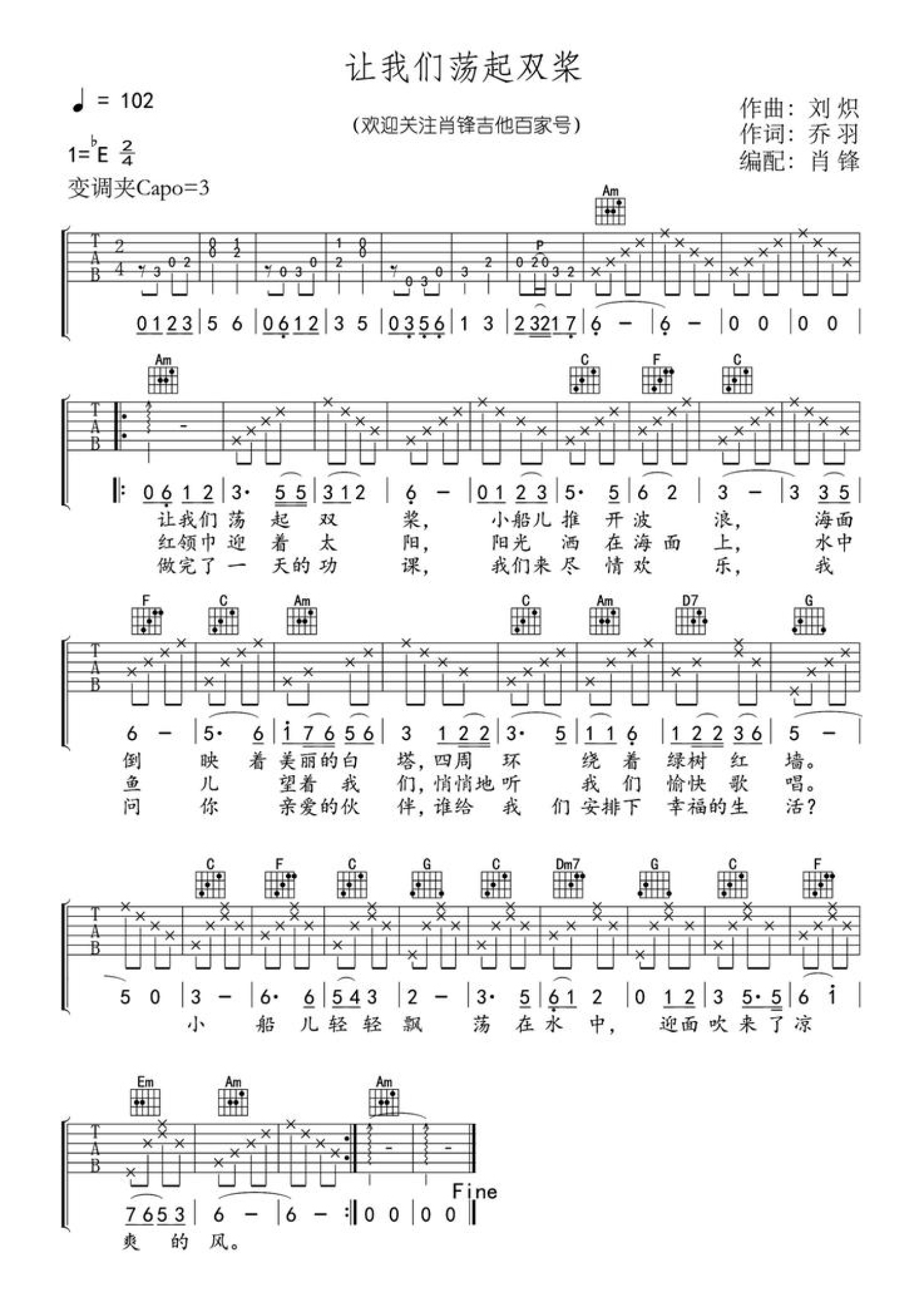 当前位置:琴谱网>吉他弹唱>让我们荡起双桨