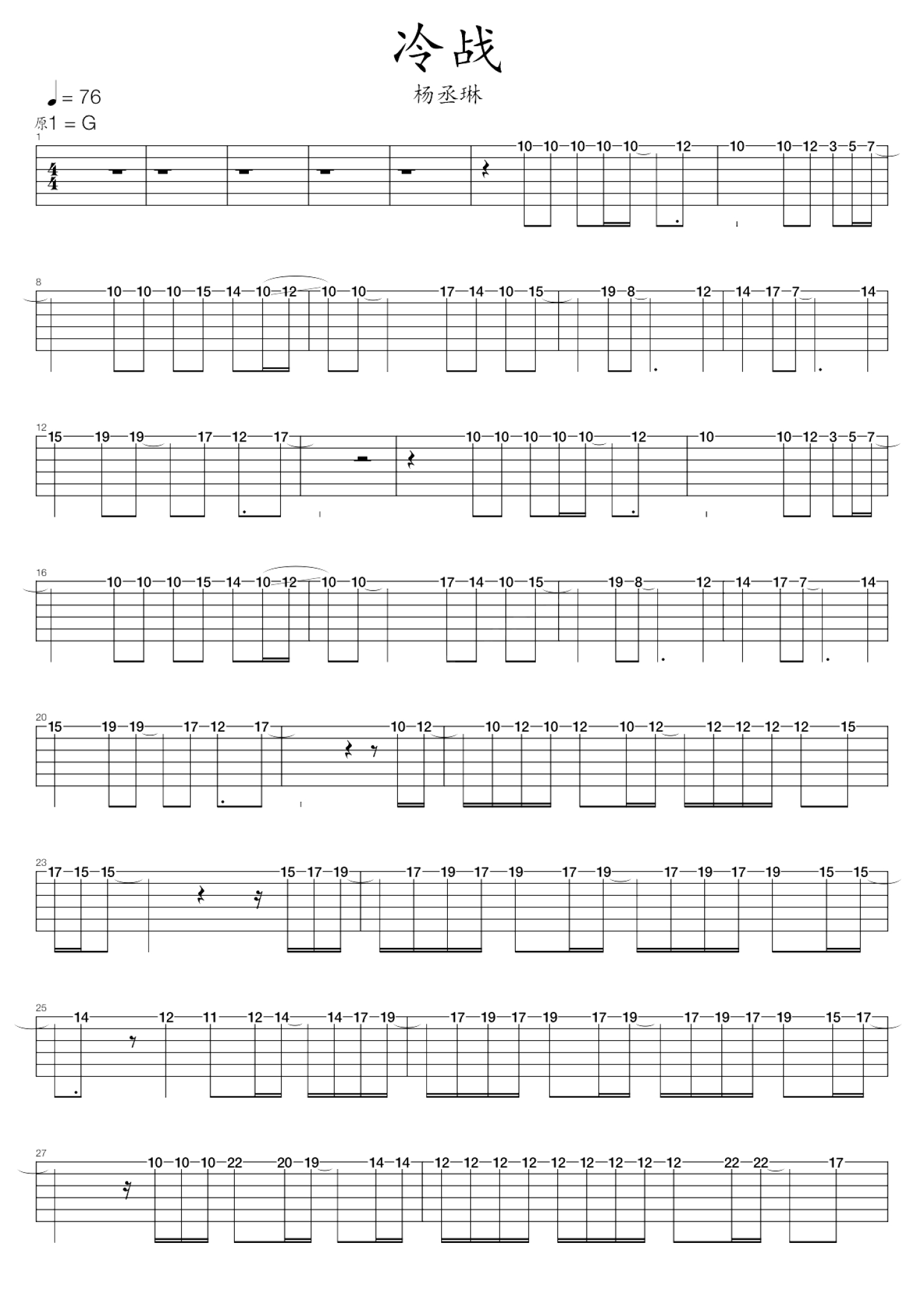 曲谱介绍: 冷战歌手:杨丞琳拍子:4/4速度:60-80调式:C调难度:简单类型:弹唱风格:流行