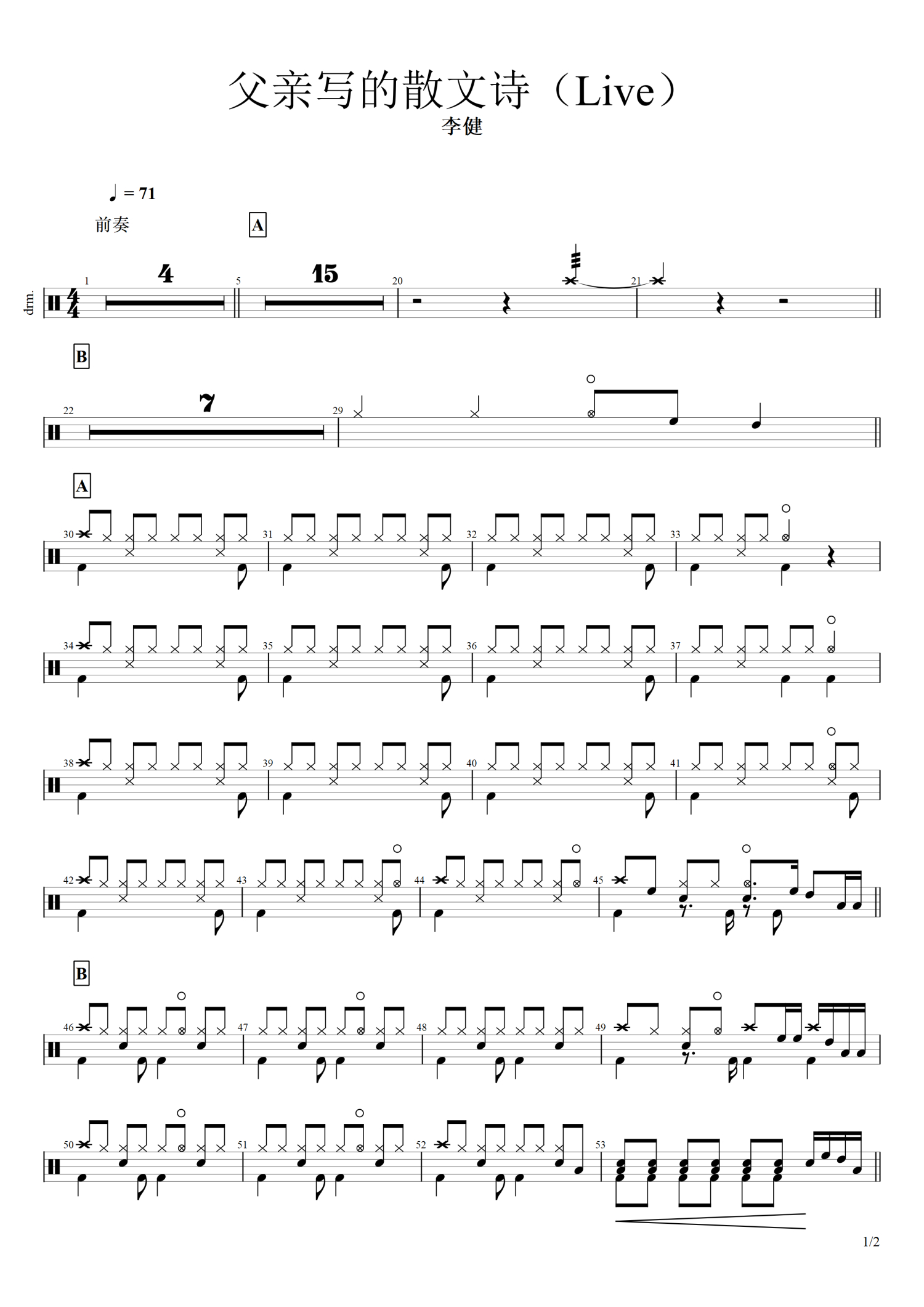 • 父亲写的散文诗鼓谱 - 李健 - 架子鼓谱 - Live第1张
