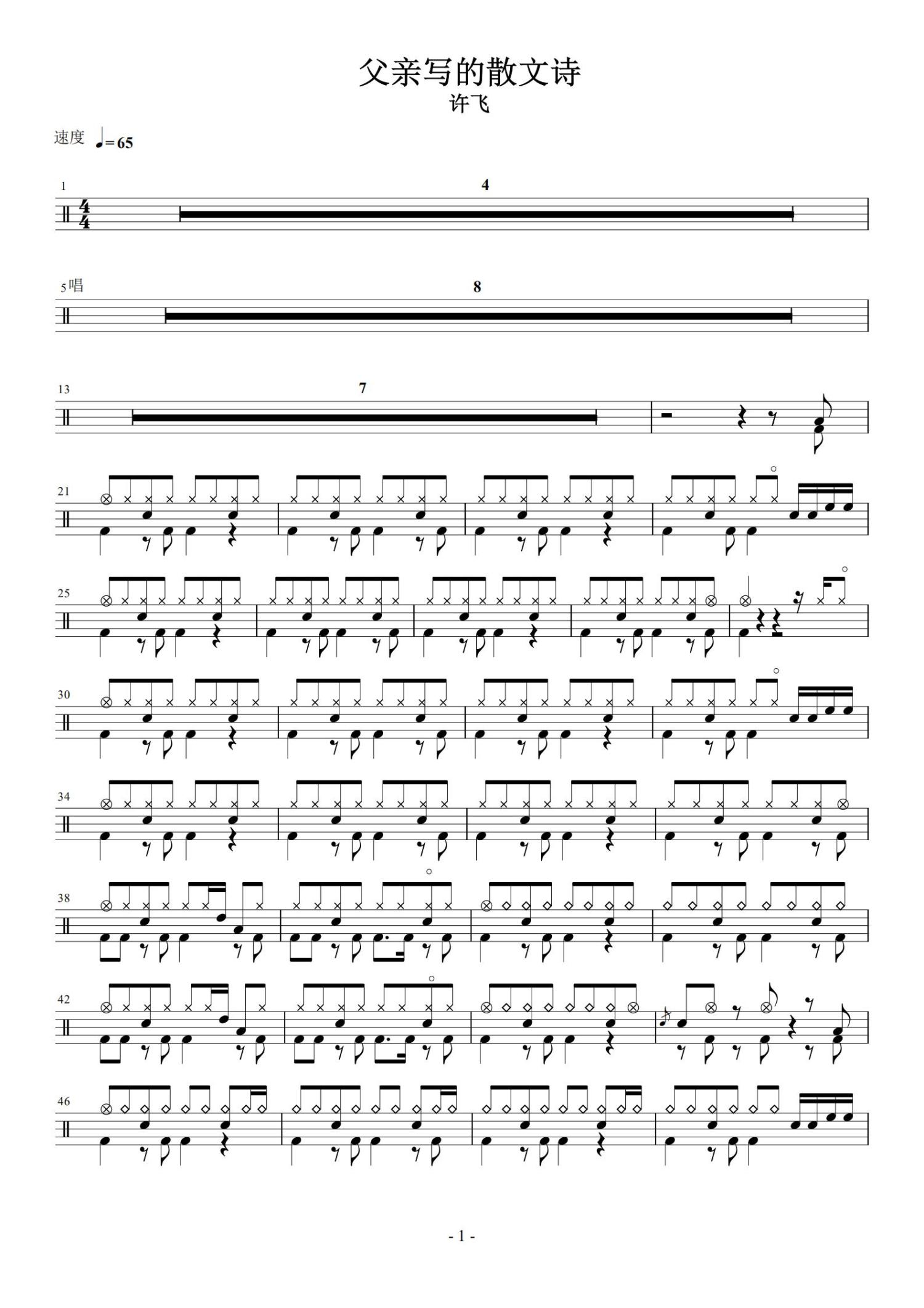 • 父亲写的散文诗鼓谱 - 许飞 - 架子鼓谱第1张