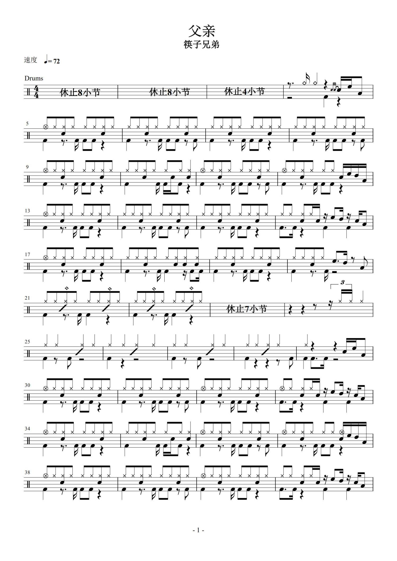 • 父亲鼓谱 - 筷子兄弟 - 架子鼓谱第1张