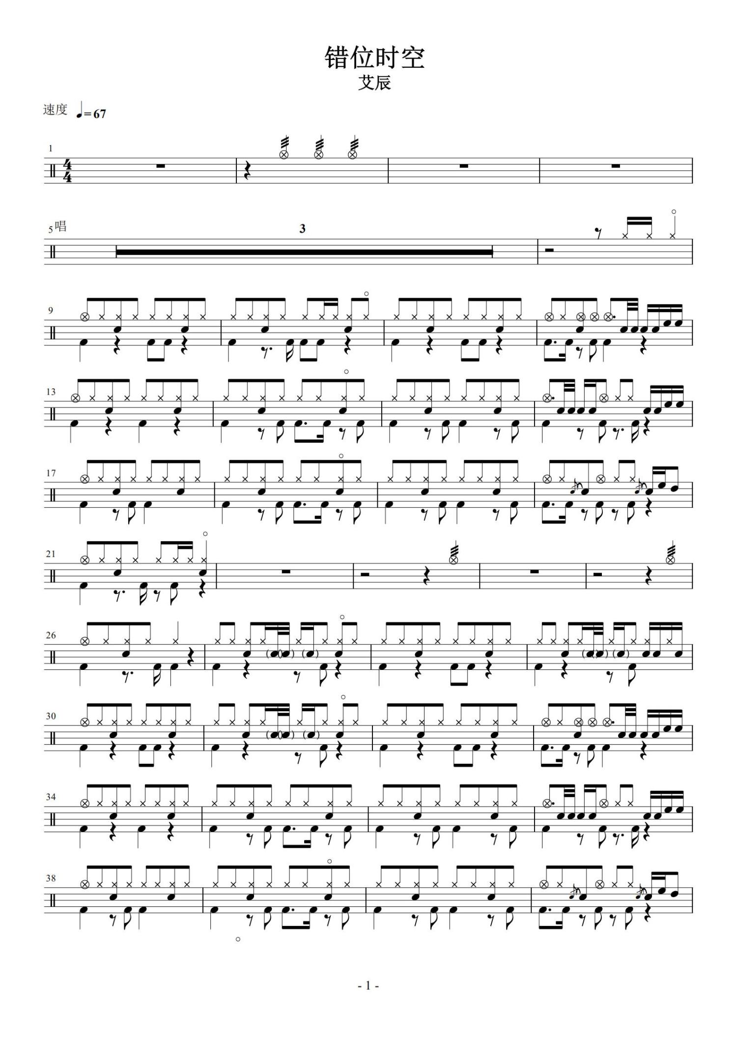 • 错位时空鼓谱 - 艾辰 - 架子鼓谱第1张