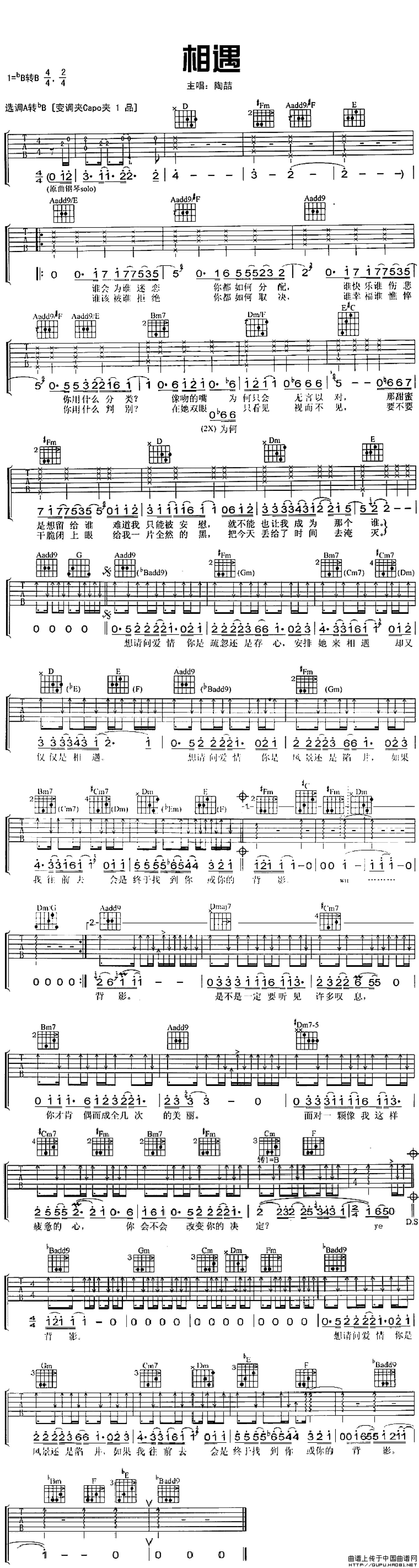 曲谱介绍: 陶喆《相遇》吉他谱_吉他弹唱谱