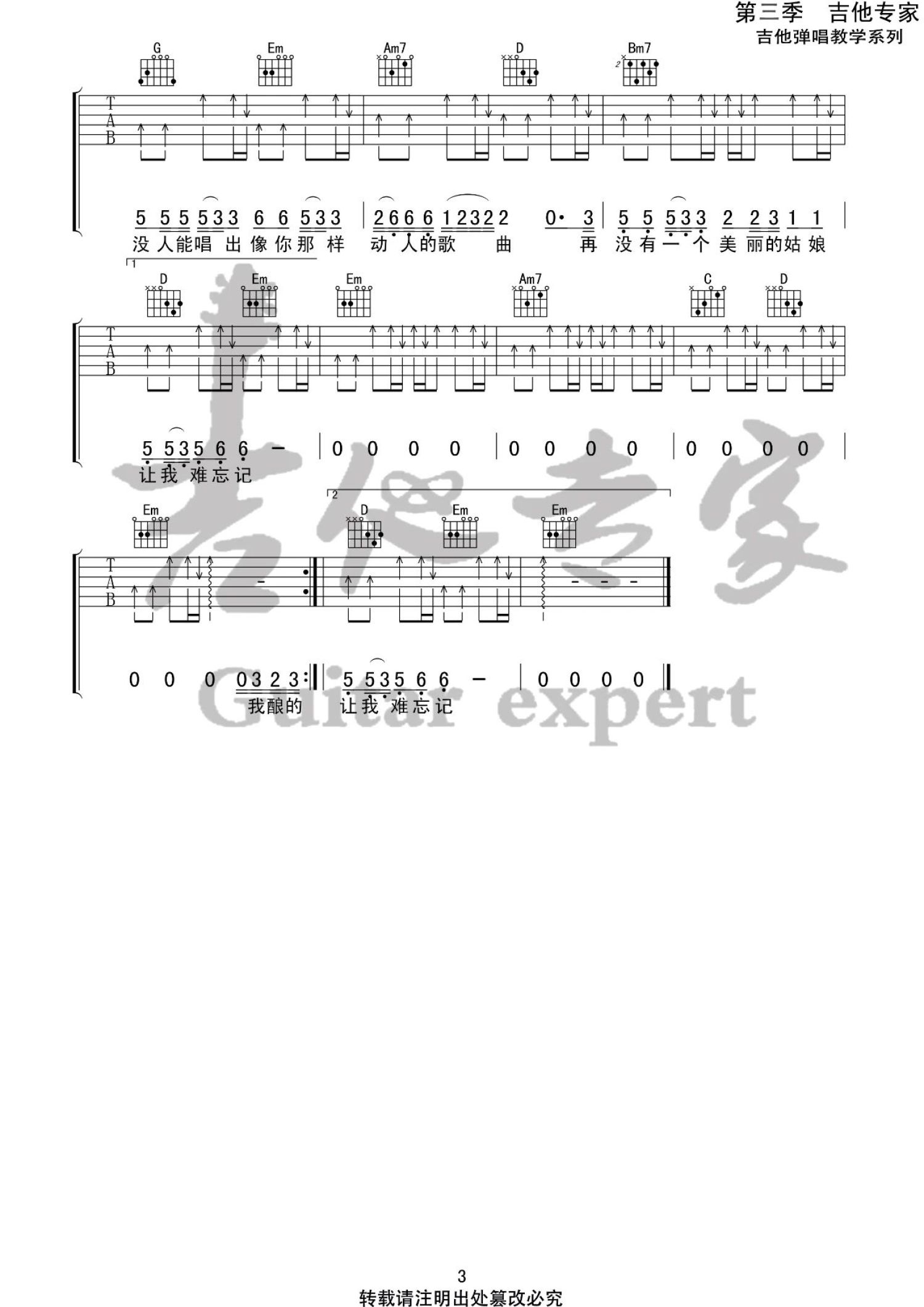 吉他弹唱G调来源:吉他专家653 浏览2021-09-10 09:30发布图谱共3页