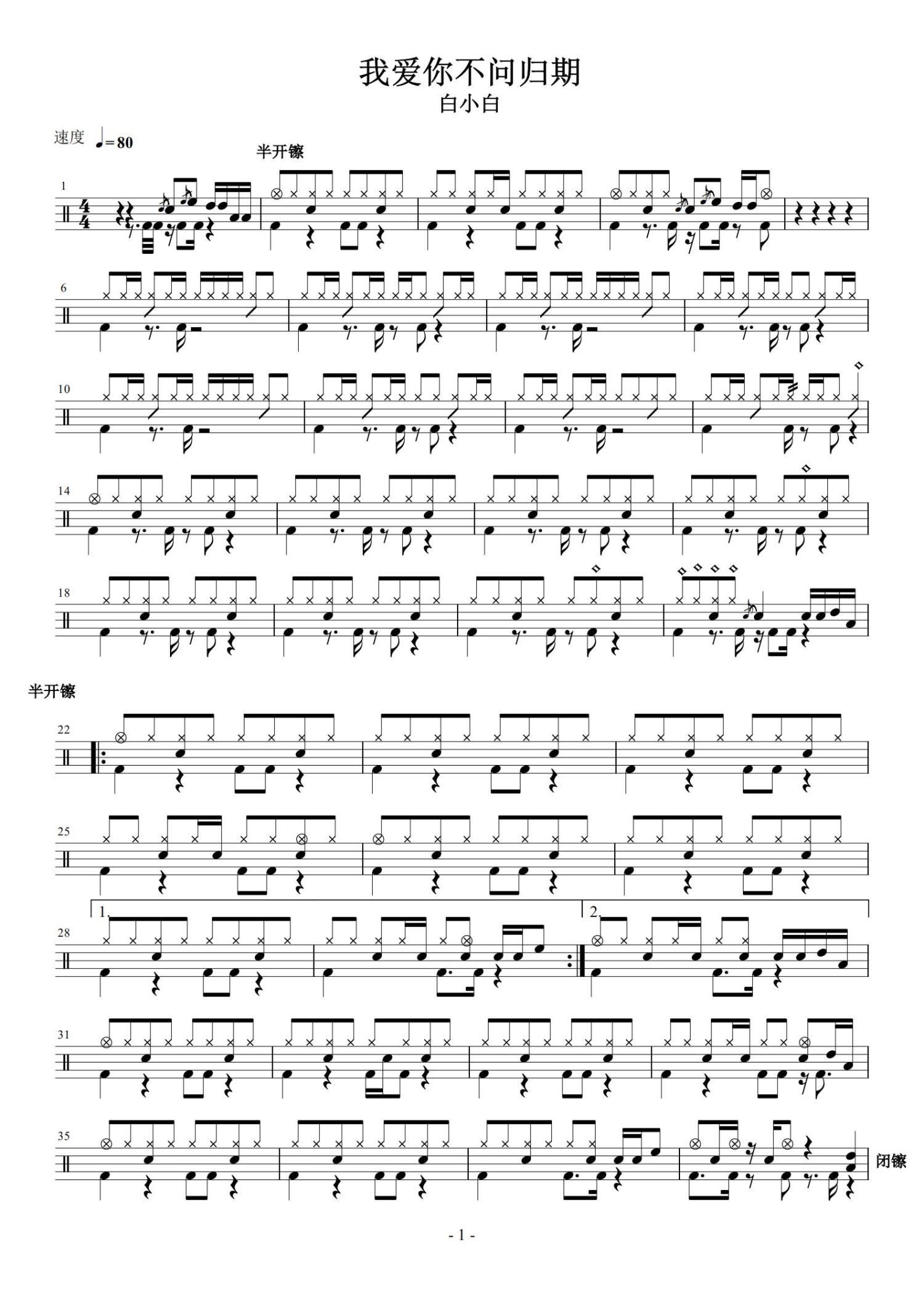 • 我爱你不问归期鼓谱 - 白小白 - 架子鼓谱第1张
