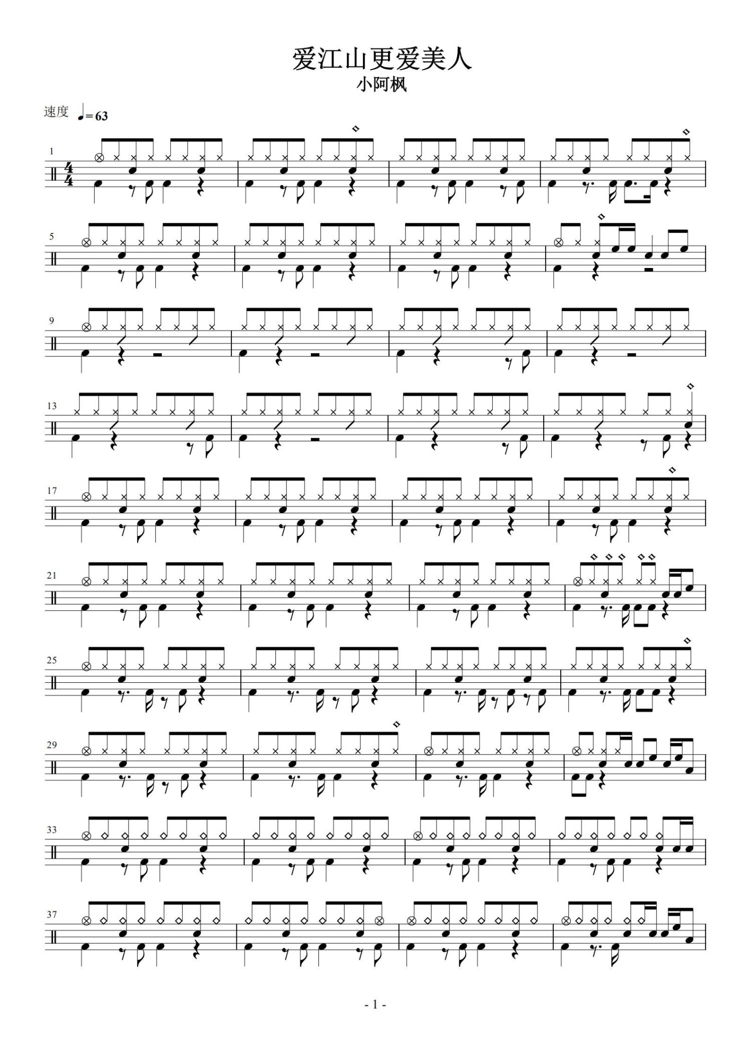 • 爱江山更爱美人鼓谱 - 小阿枫 - 架子鼓谱第1张