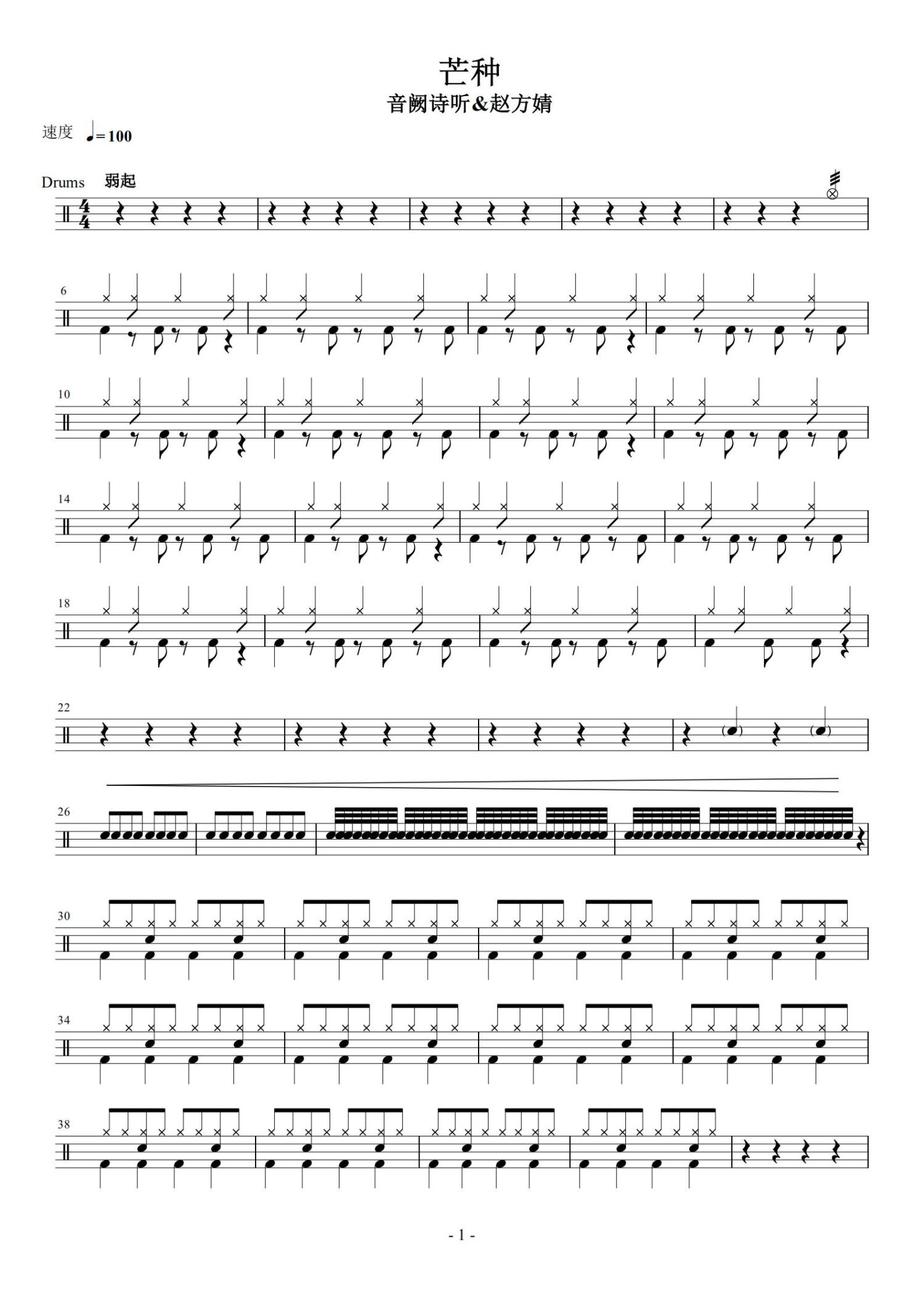 • 芒种鼓谱 - 音厥诗听&赵方婧 - 架子鼓谱第1张