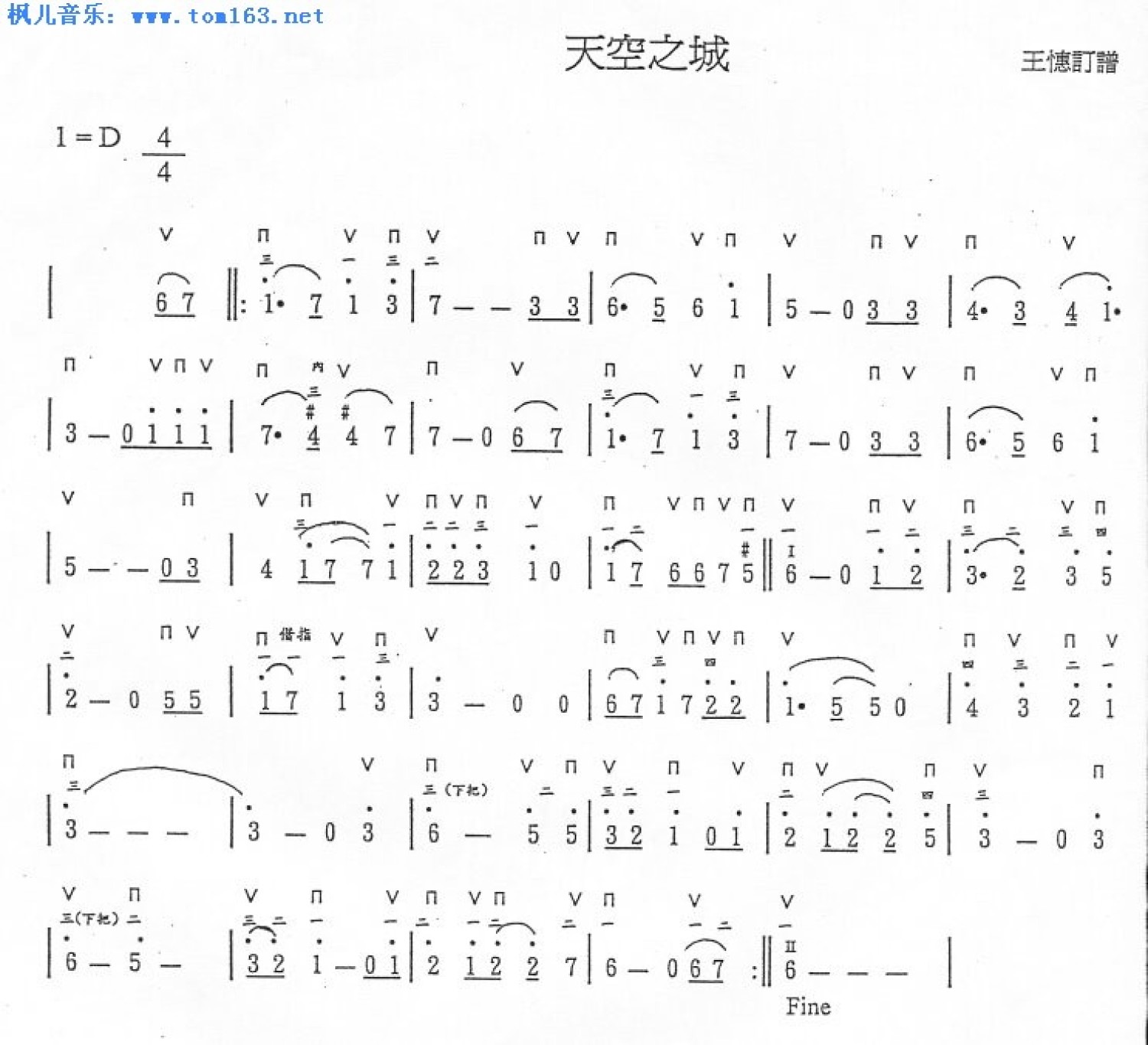 曲谱介绍: 久石让《天空之城》歌词_简谱