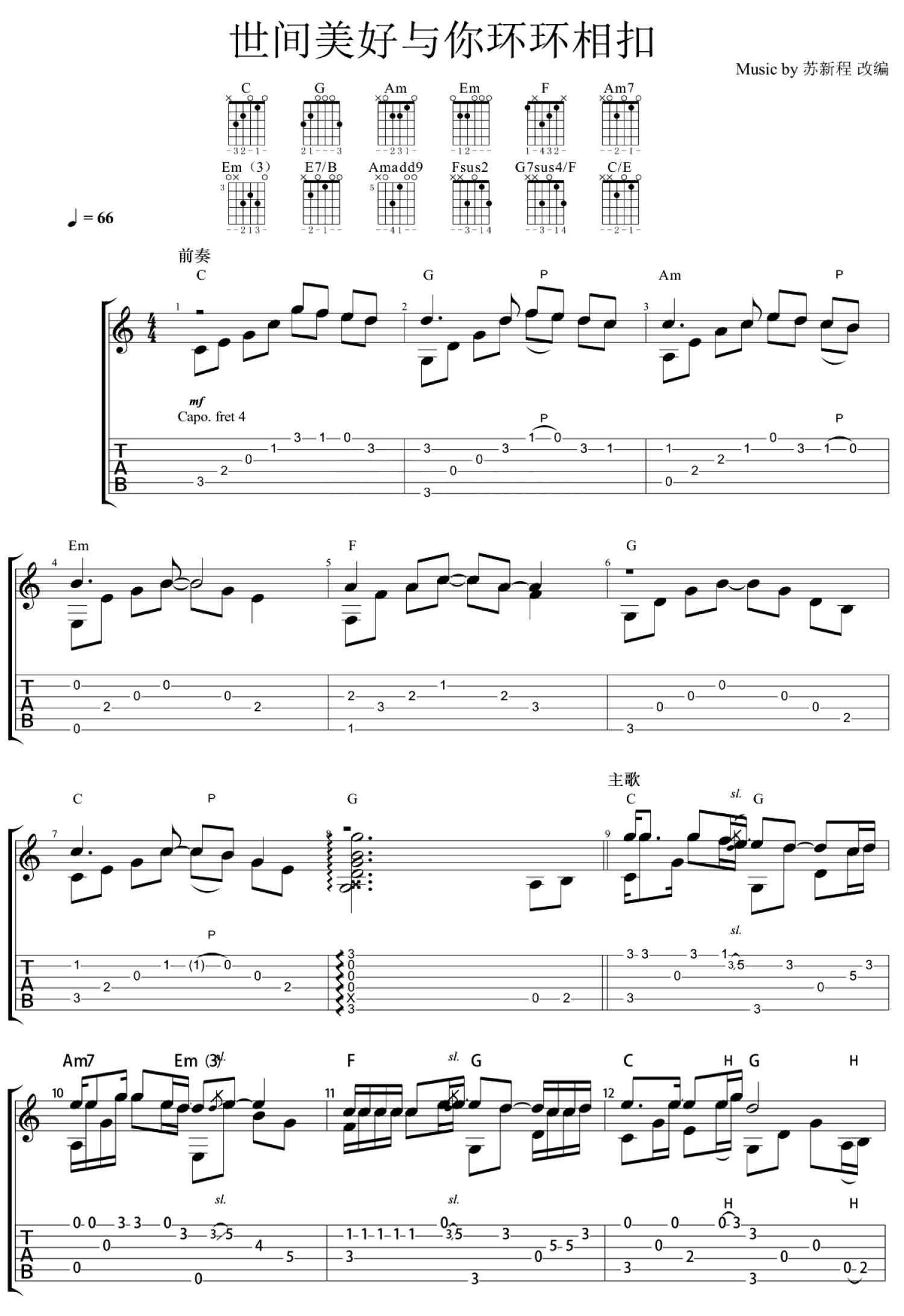 当前位置:琴谱网>吉他独奏>世间美好与你环环相扣