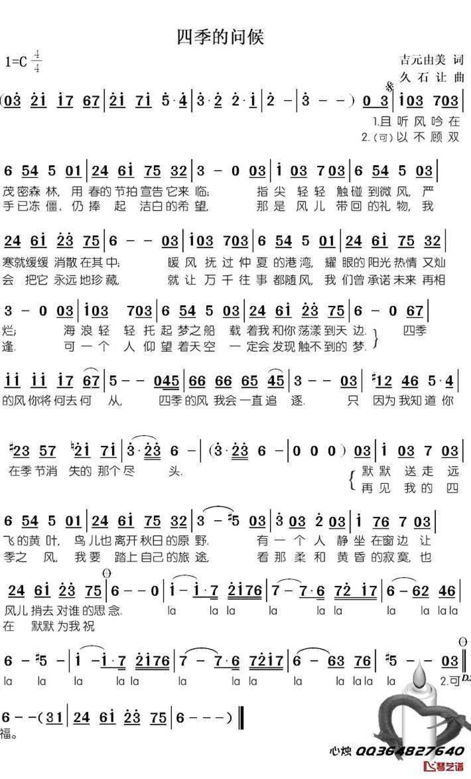 曲谱介绍: 玉门油田子弟学校《四季的问候》歌词_简谱