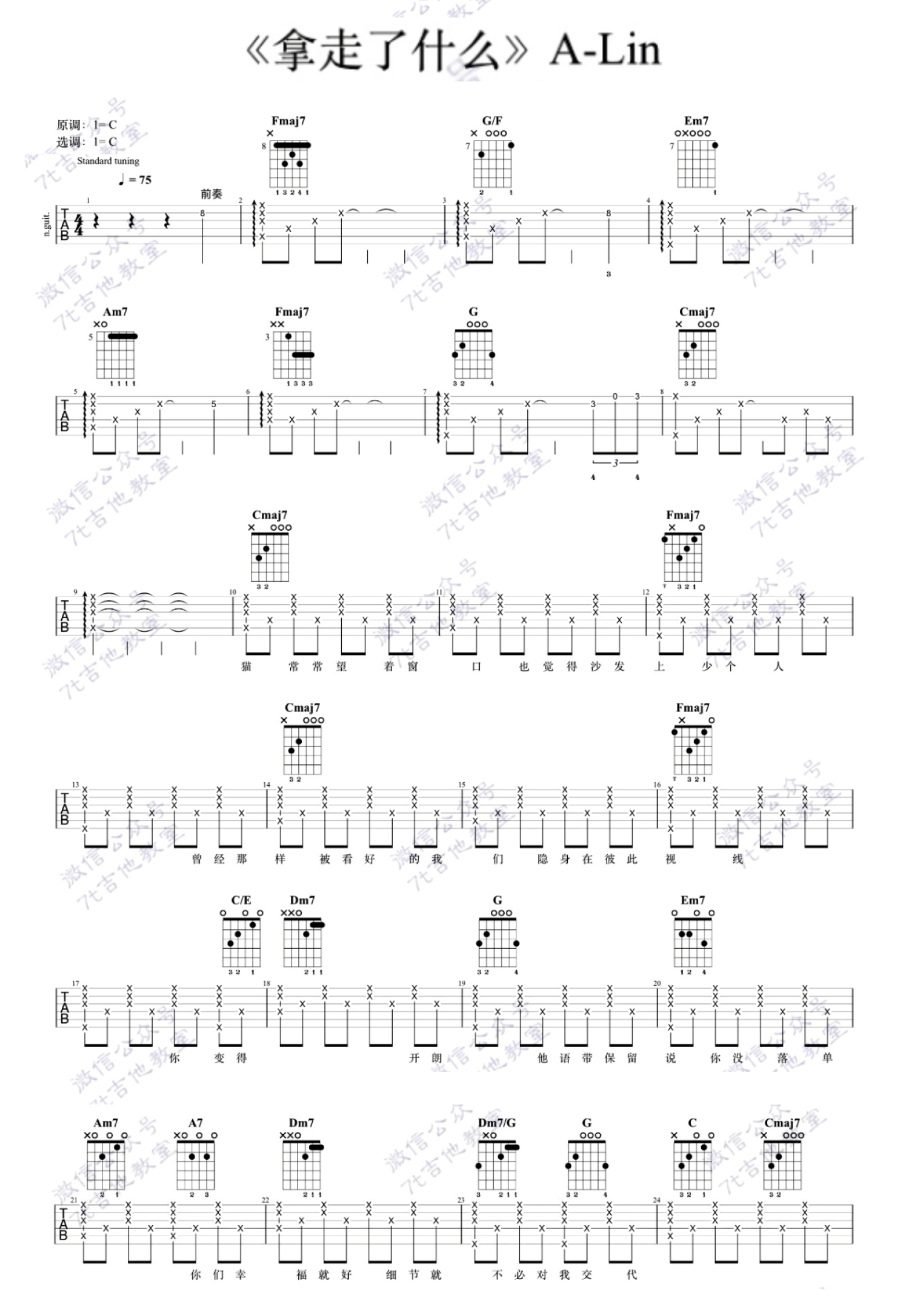 拿走了什么吉他谱 - A-Lin - C调吉他弹唱谱