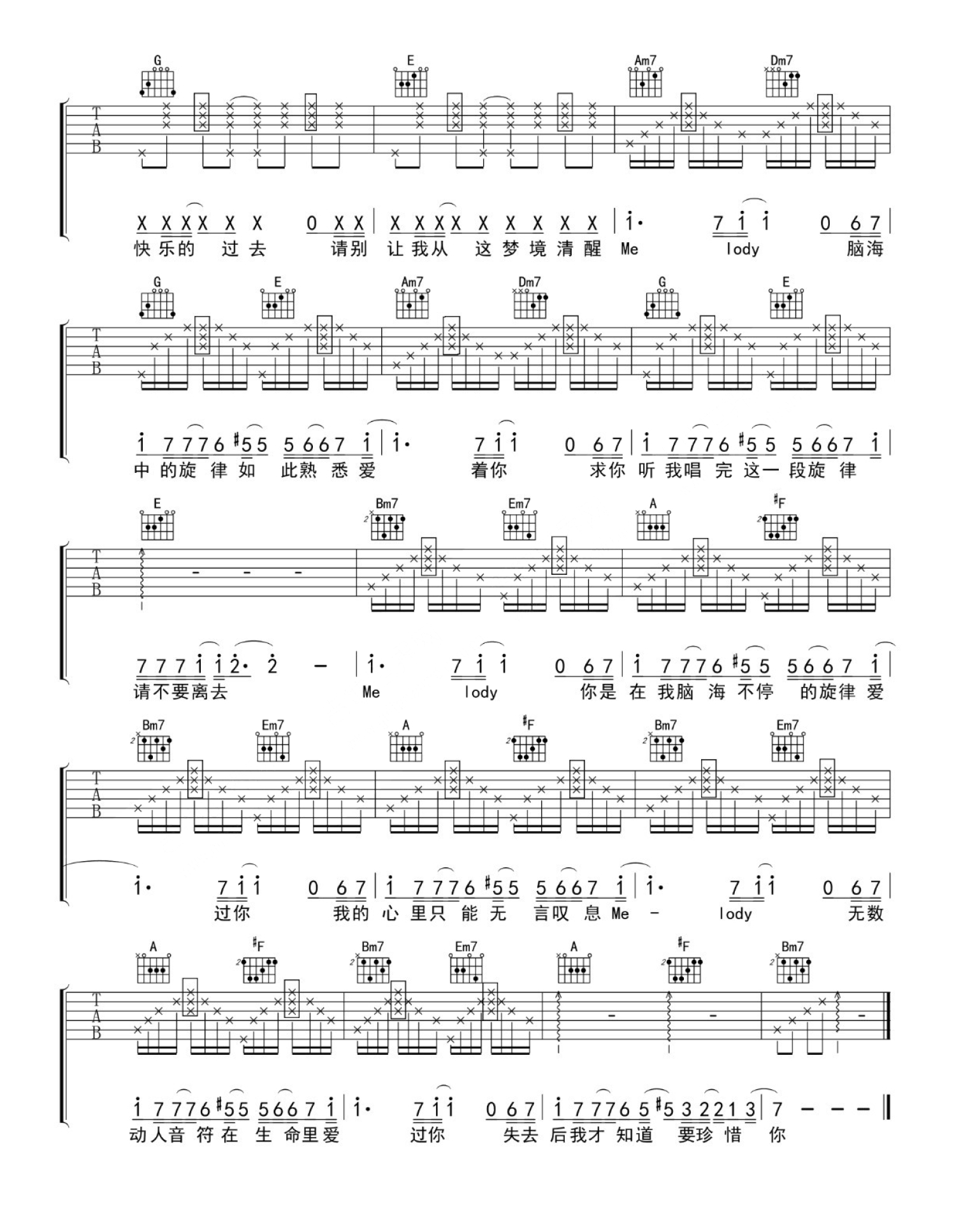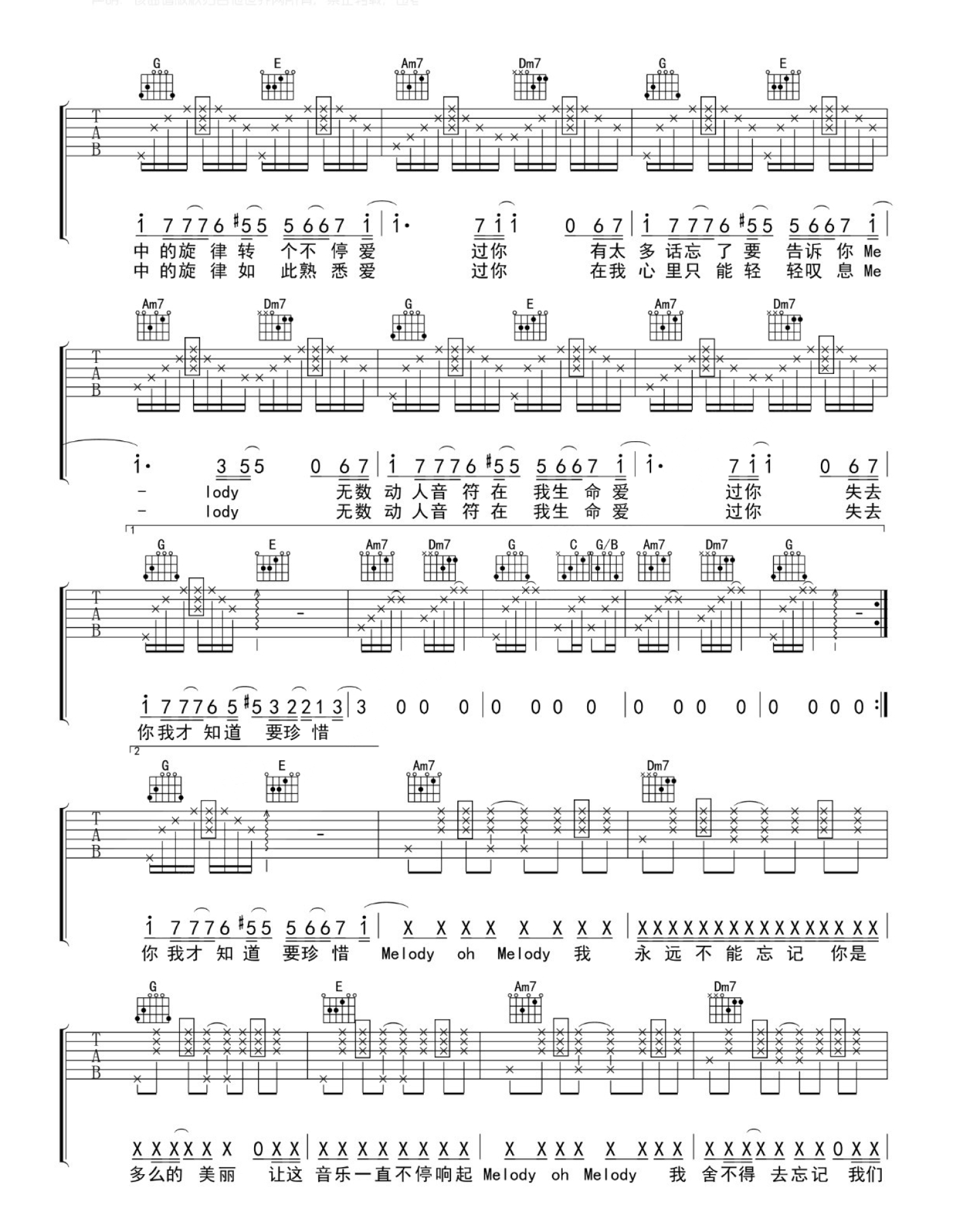 当前位置:琴谱网>吉他弹唱>melody
