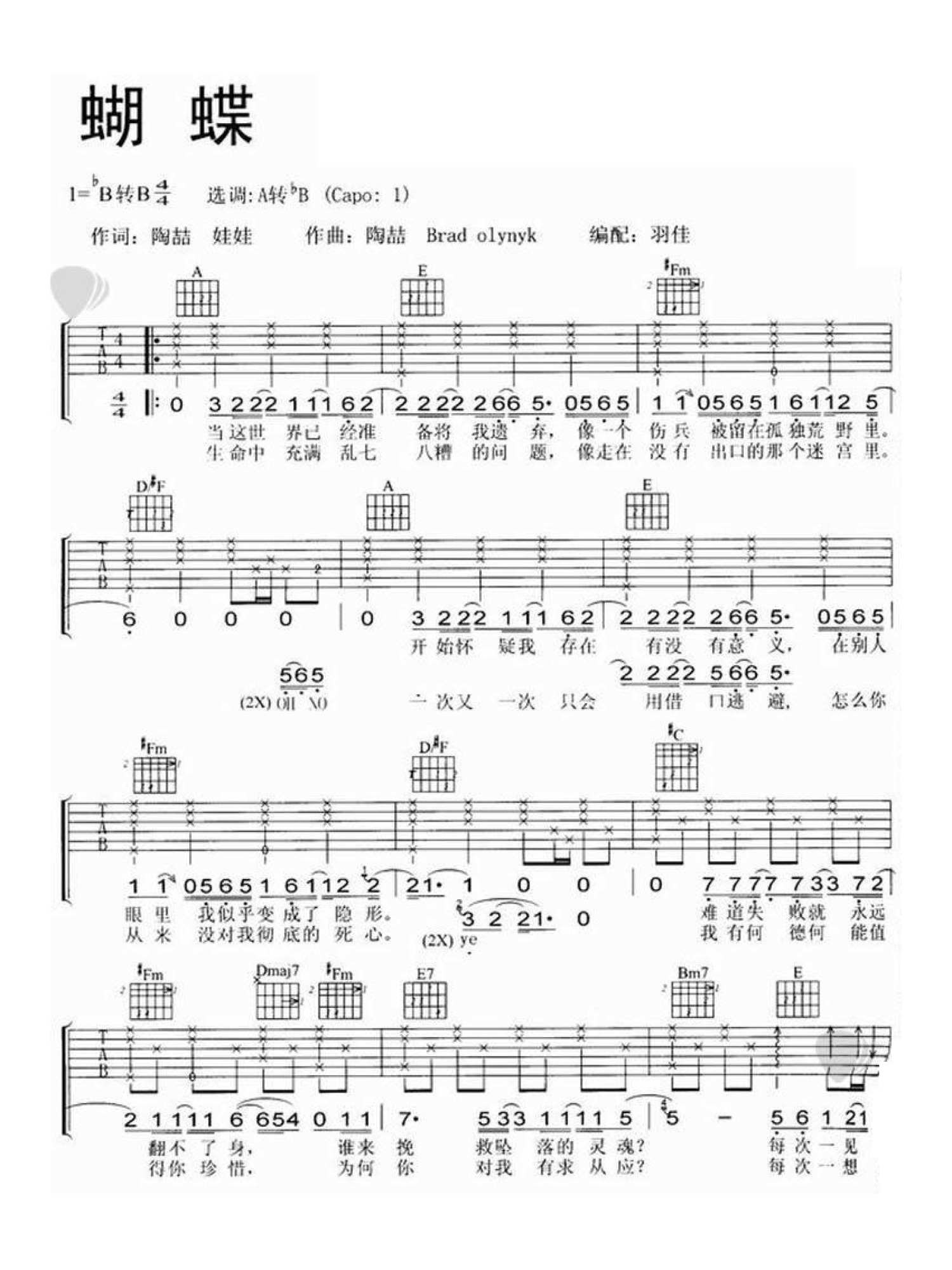 当前位置:琴谱网>吉他弹唱>蝴蝶