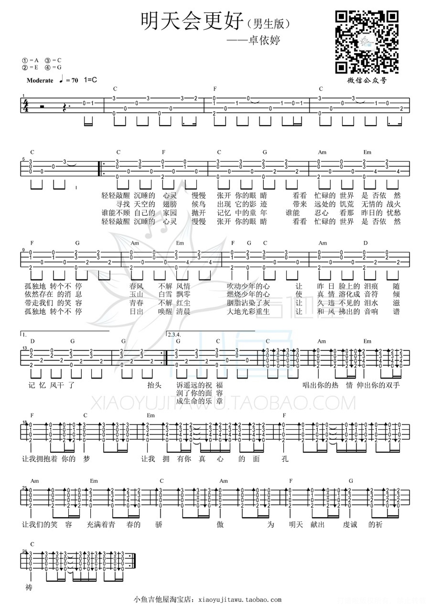 曲谱介绍: 卓依婷《明天会更好》_C调尤克里里谱_男生版