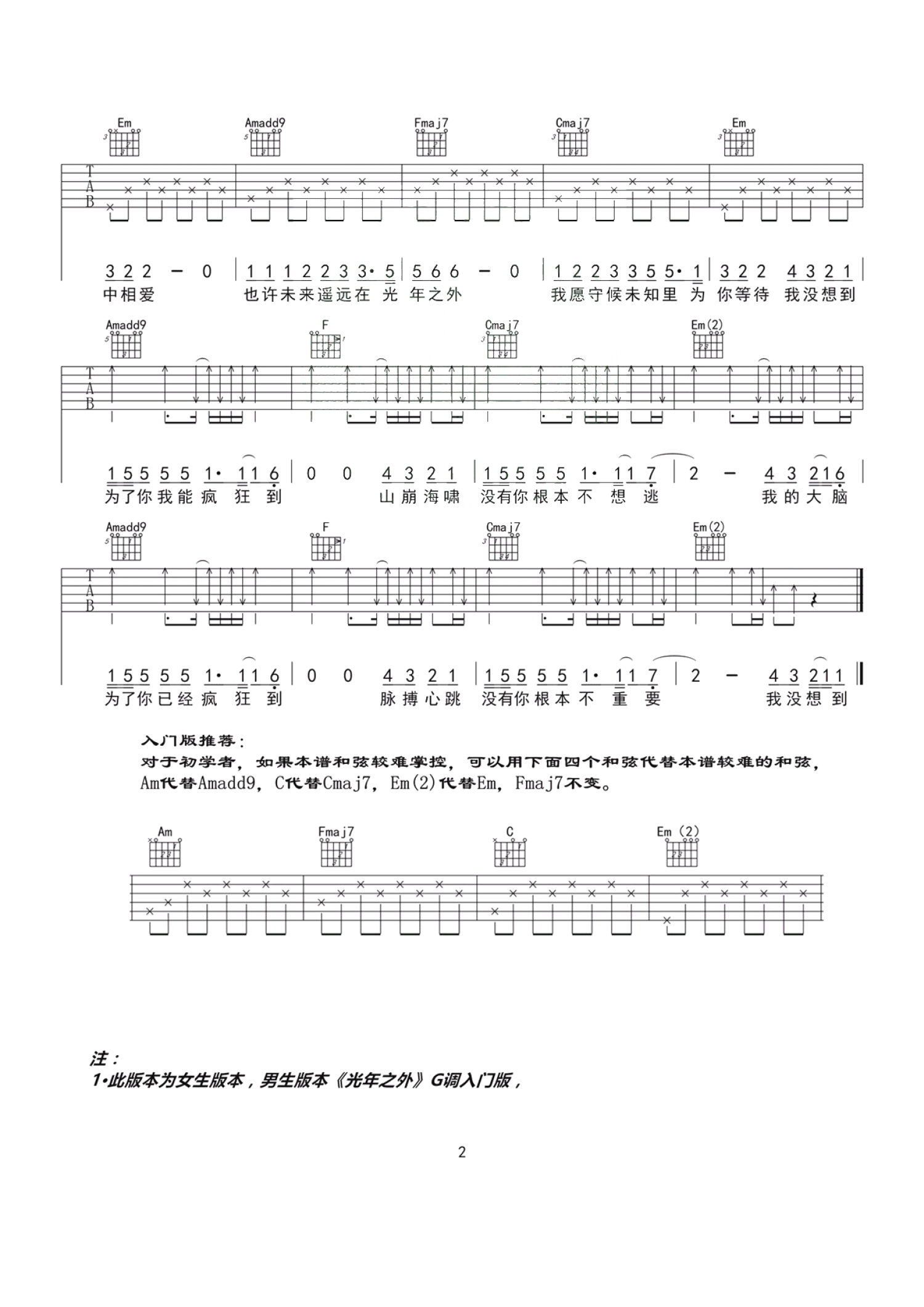 当前位置:琴谱网>吉他弹唱>光年之外