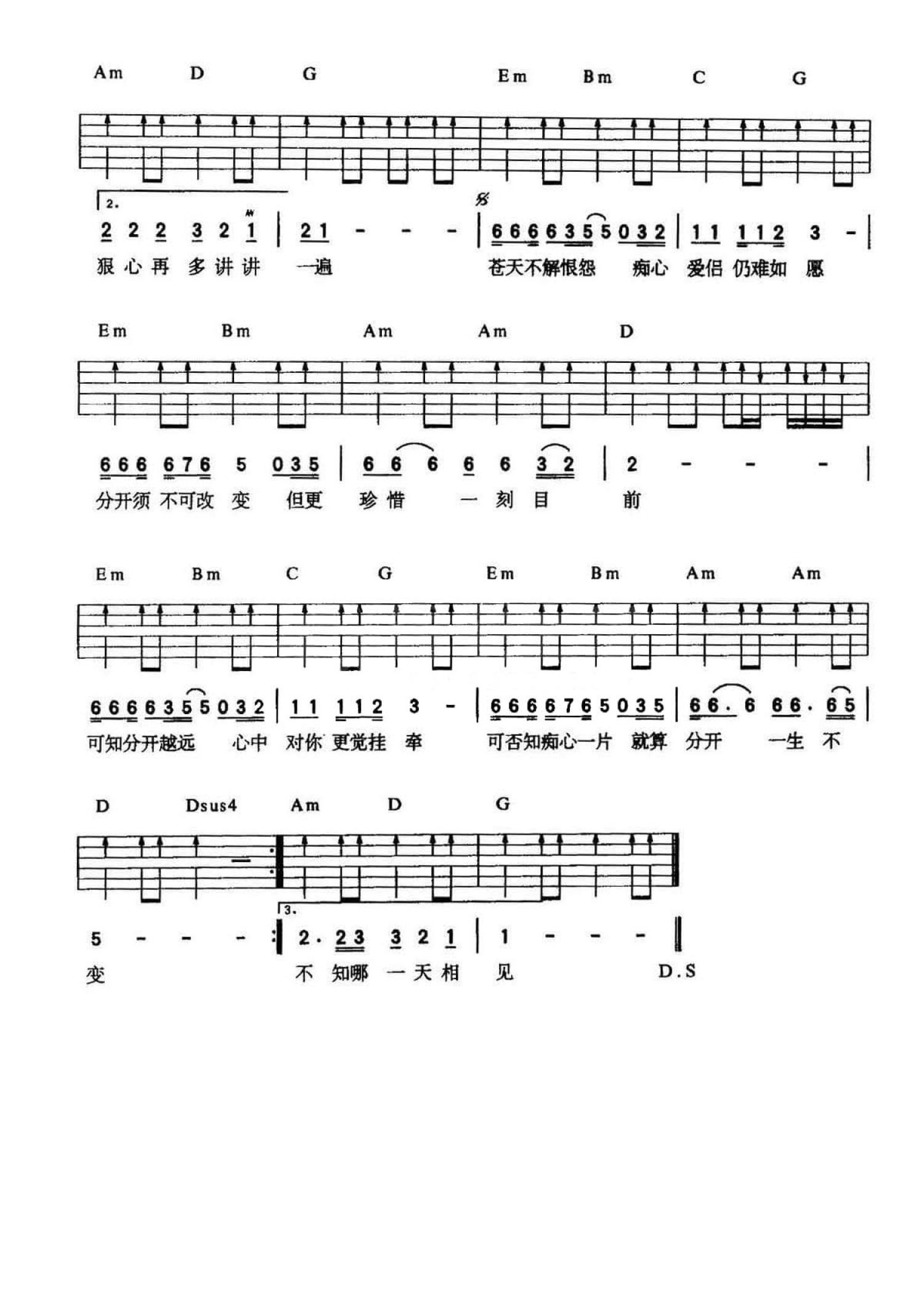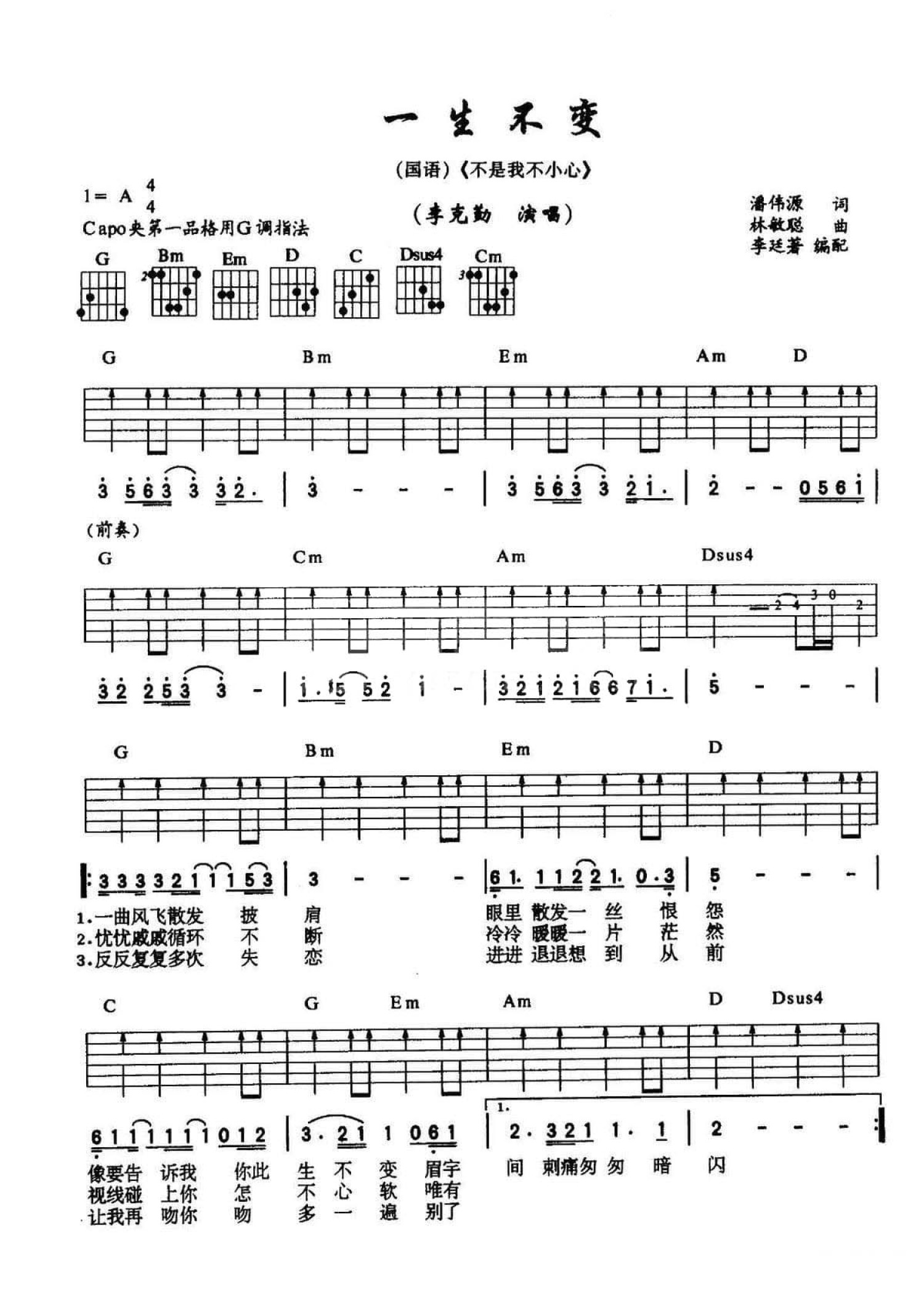 曲谱介绍: 李克勤《一生不变》吉他谱_G调吉他弹唱谱