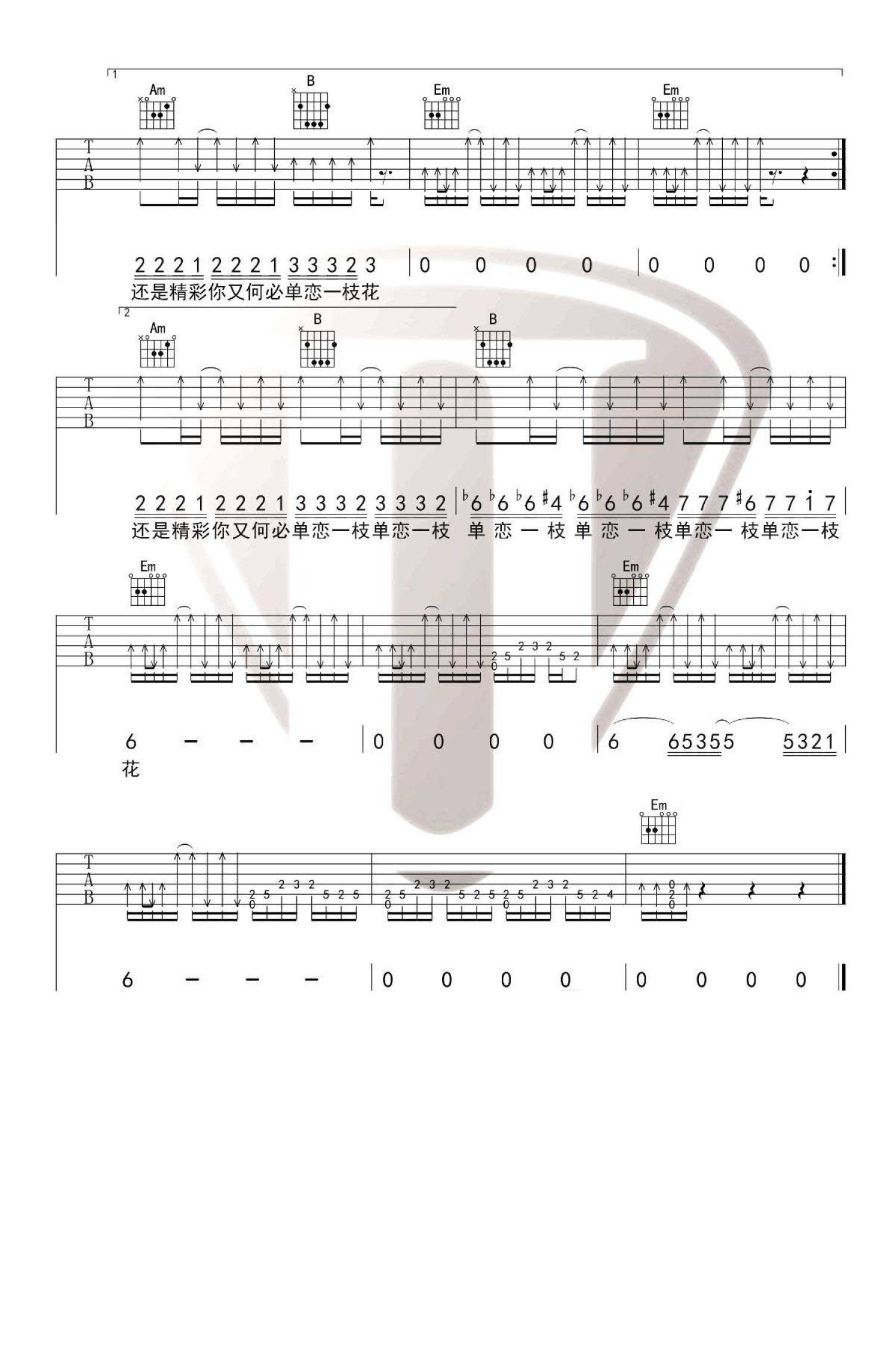 当前位置:琴谱网>吉他弹唱>单恋一枝花