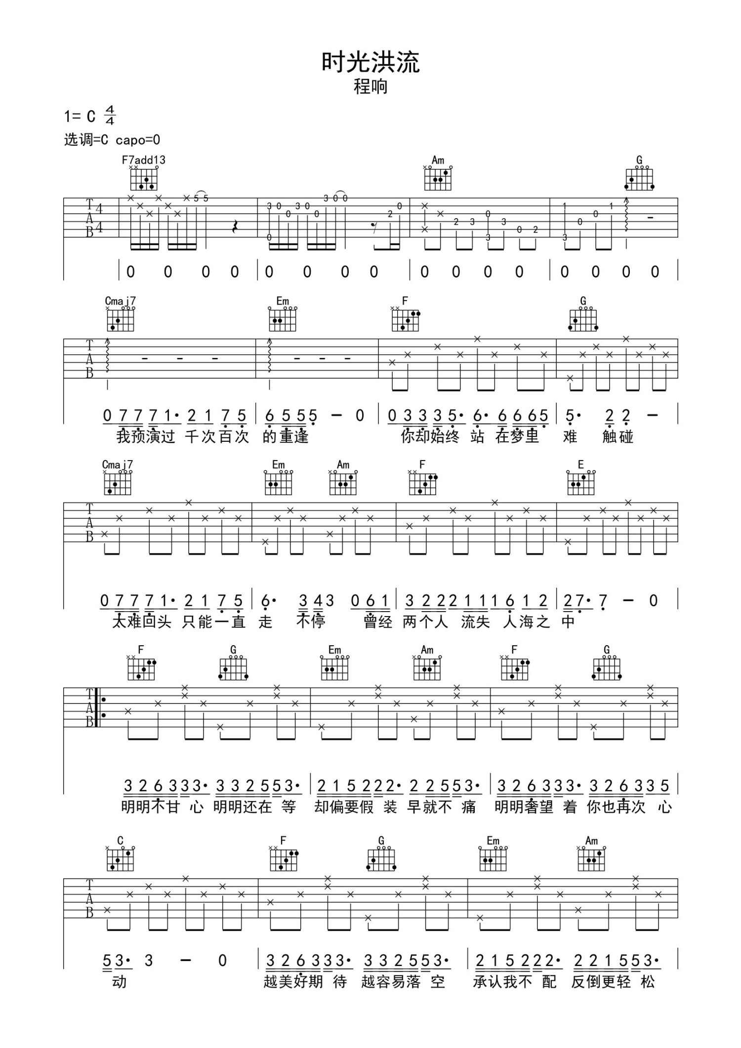 • 时光洪流吉他谱 - 程响 - C调吉他弹唱谱第1张
