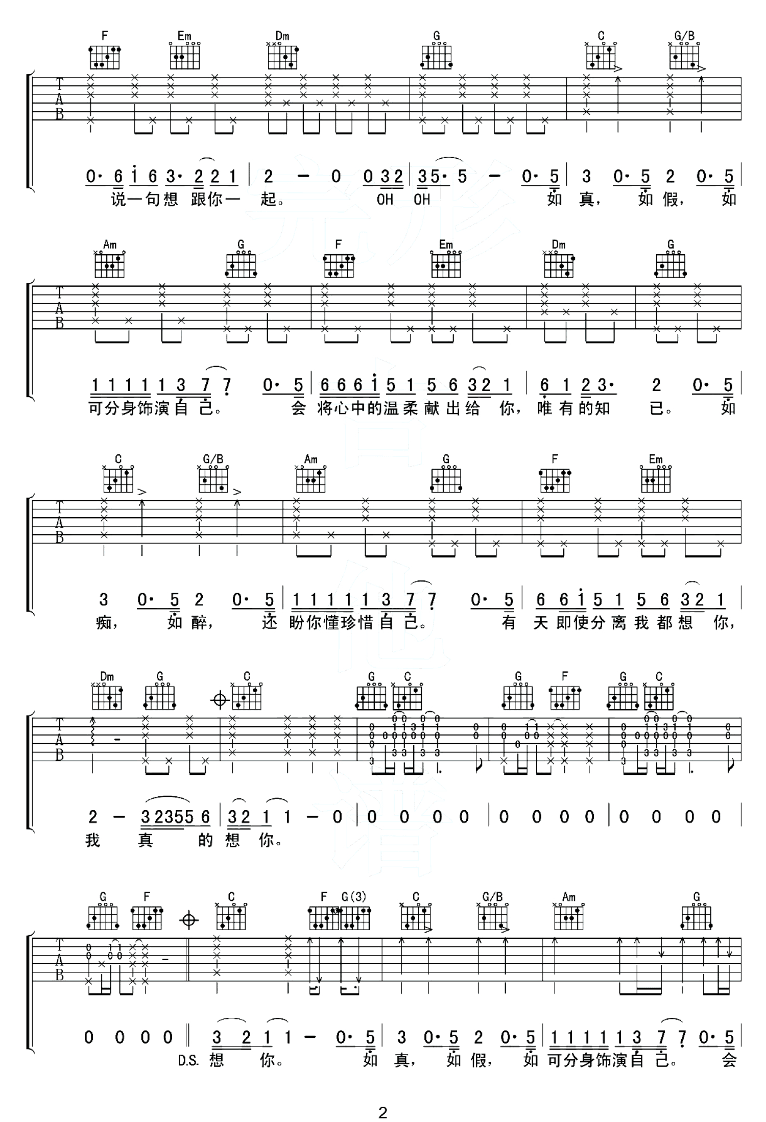 吉他弹唱C调来源:完形吉他--沈亮3692 浏览2018-12-19 20:59发布图谱共3页