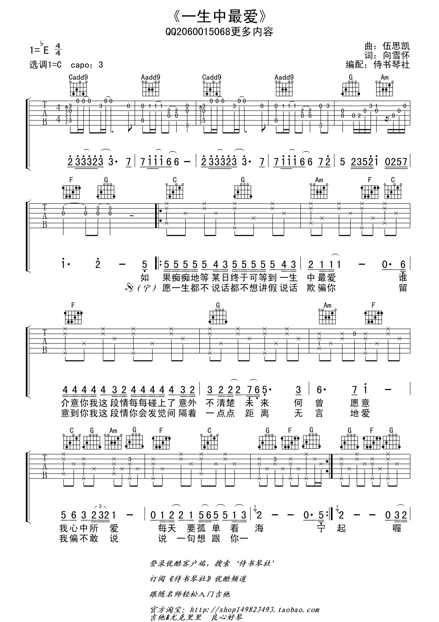 当前位置:琴谱网>吉他弹唱>一生中最爱