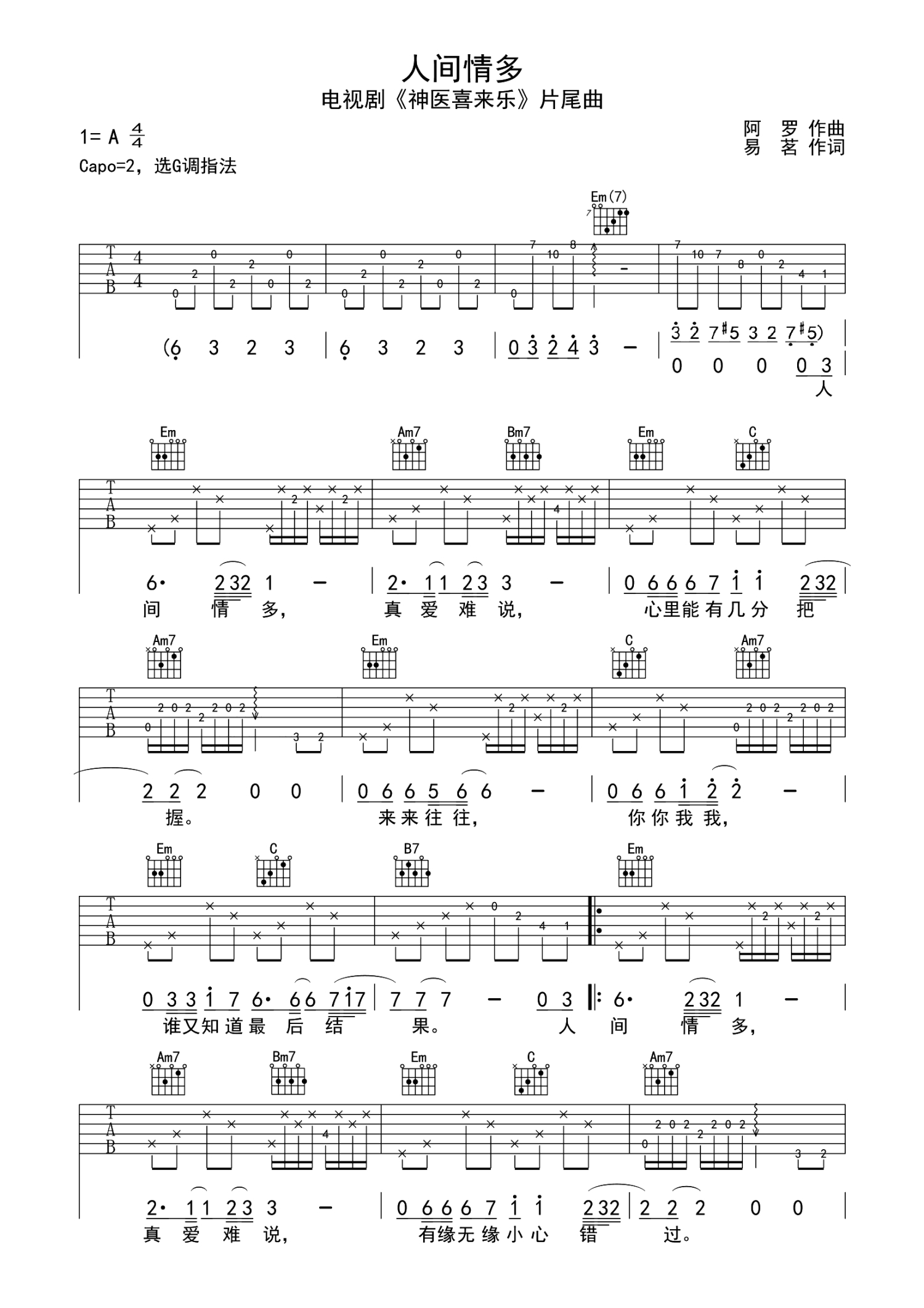 人间情多吉他谱 - 李殊 - G调吉他弹唱谱