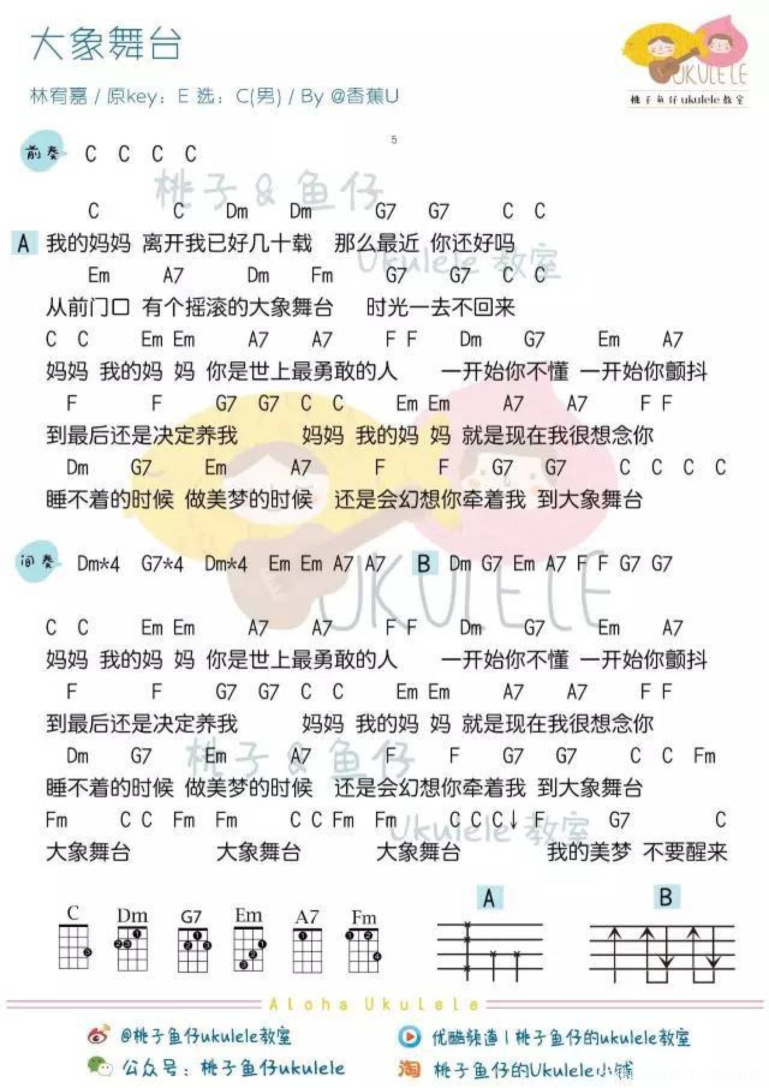 曲谱介绍: 林宥嘉《大象舞台》_C调尤克里里谱_男生版