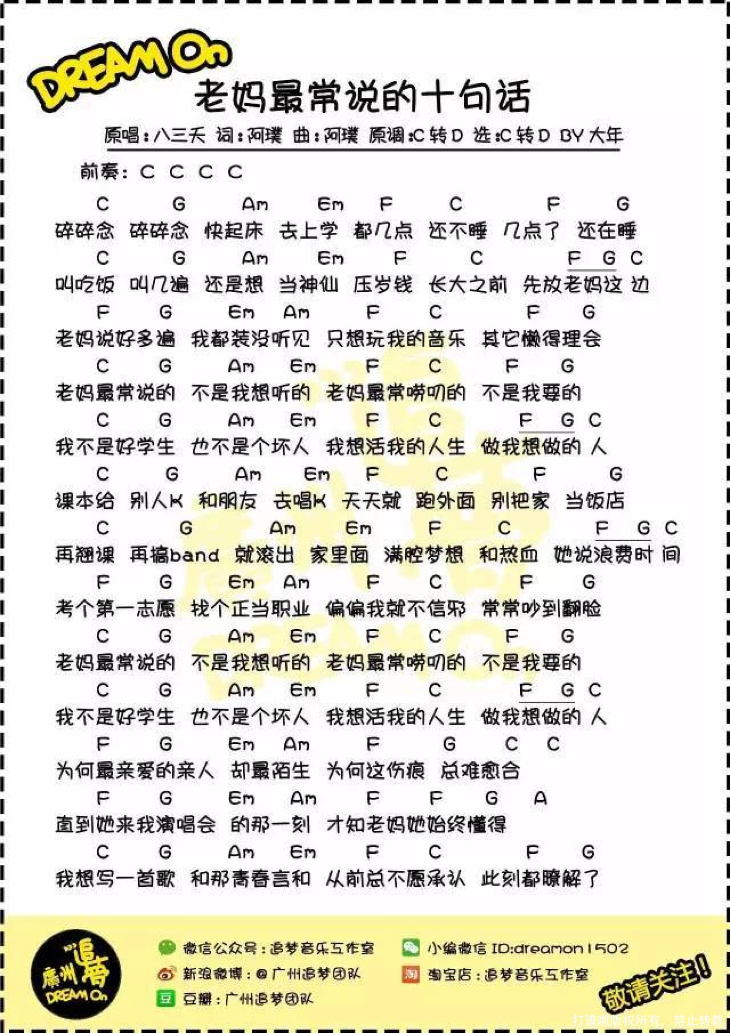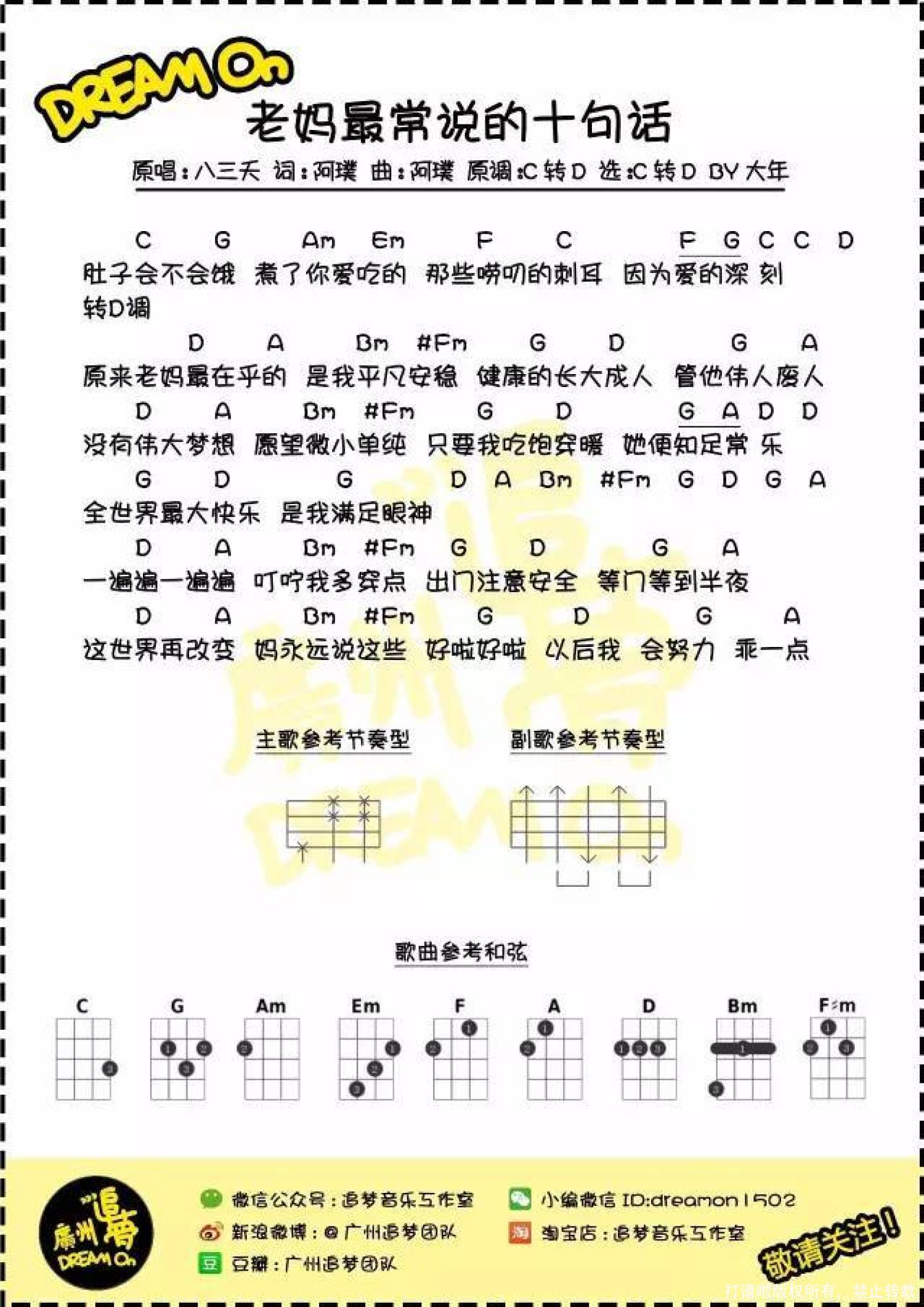曲谱介绍: 八三夭《老妈最常说的十句话》_尤克里里谱