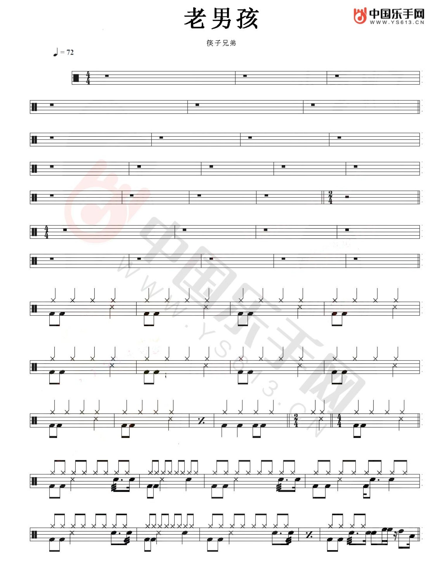 老男孩鼓谱 - 筷子兄弟 - 架子鼓谱