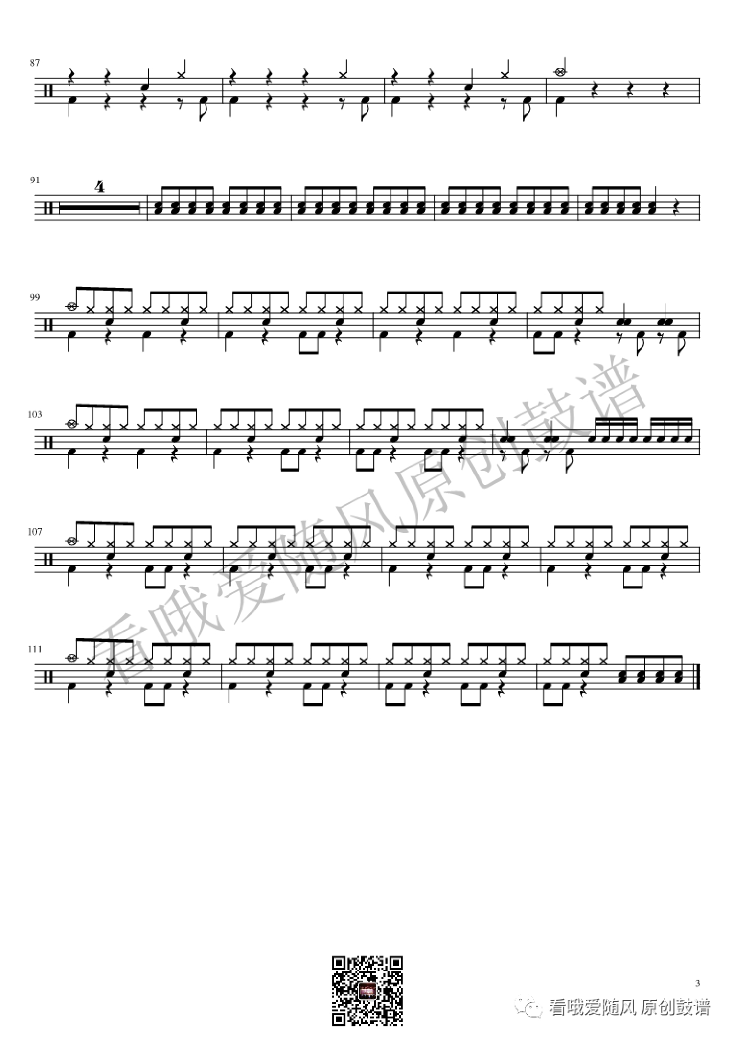 架子鼓谱原调来源:看哦爱随风原创鼓谱802 浏览2022-07-07 16:52发布图谱共3页